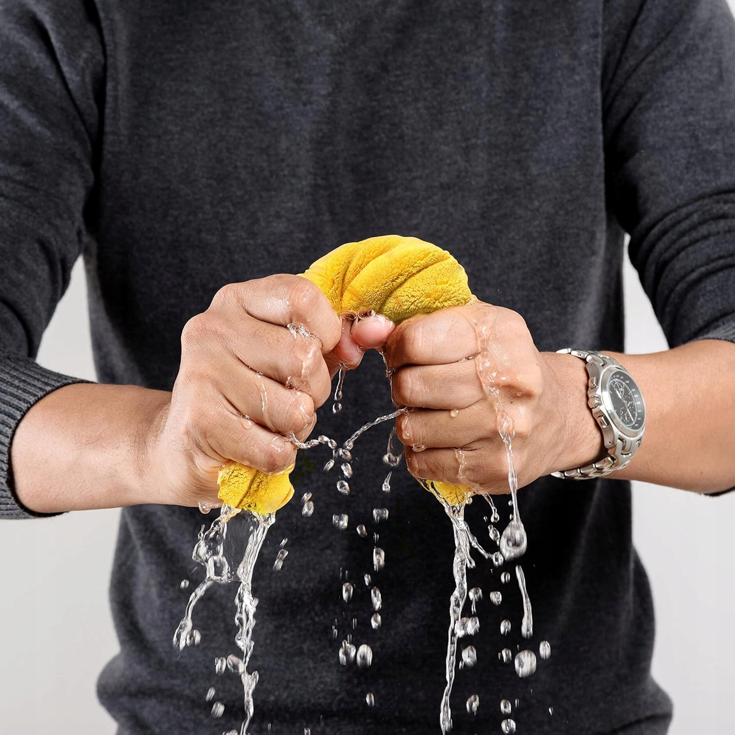 Полотенце эффективно впитывает воду, не оставляя разводов и пятен, сводя к минимуму риск появления пятен от воды, что особенно важно для темных цветов краски.