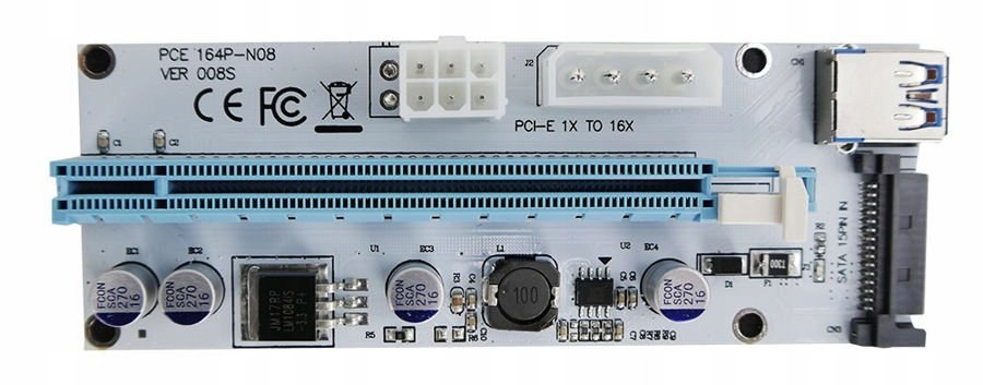 10x Riser008S USB3.0 PCI-E1-16x з живленням від 6PIN SATA