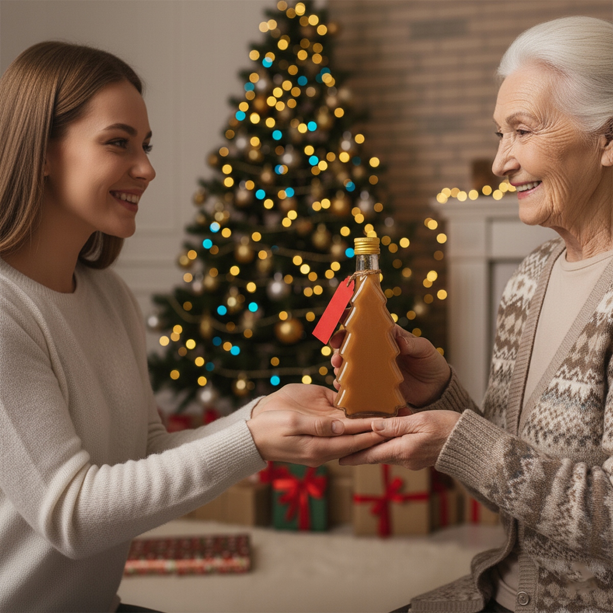 ☃️ Бутылка РОЖДЕСТВЕНСКАЯ ЁЛКА объёмом 250 мл – уникальная звезда среди нашего рождественского предложения. Благодаря своей уникальной форме он прекрасно смотрится на барной стойке или столе и служит декоративным элементом.
