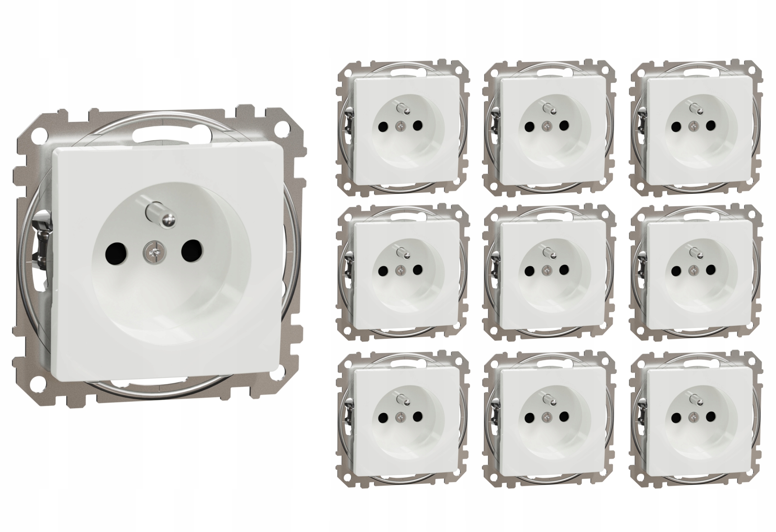 Комплект 10 шт - Schneider Electric, Sedna Design & Elements, розетка 2p+PE со шторками (безрезьбовые клеммы) белая 2-полюсная + PE со шторками IP20, SDD111012