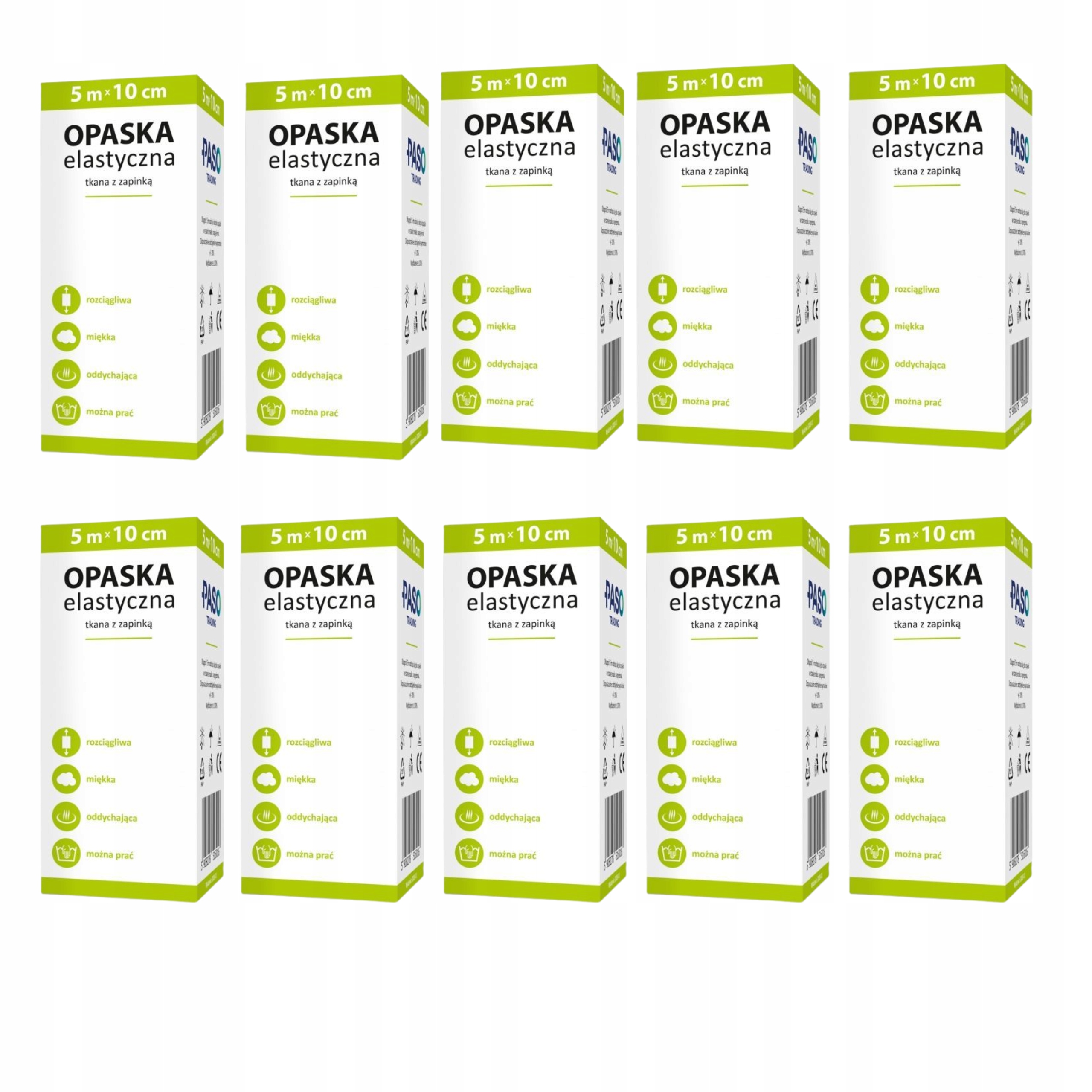 10x ТКАНЫЙ ЭЛАСТИЧНЫЙ БИНТ С ЗАСТЕЖКОЙ 5М Х 10СМ