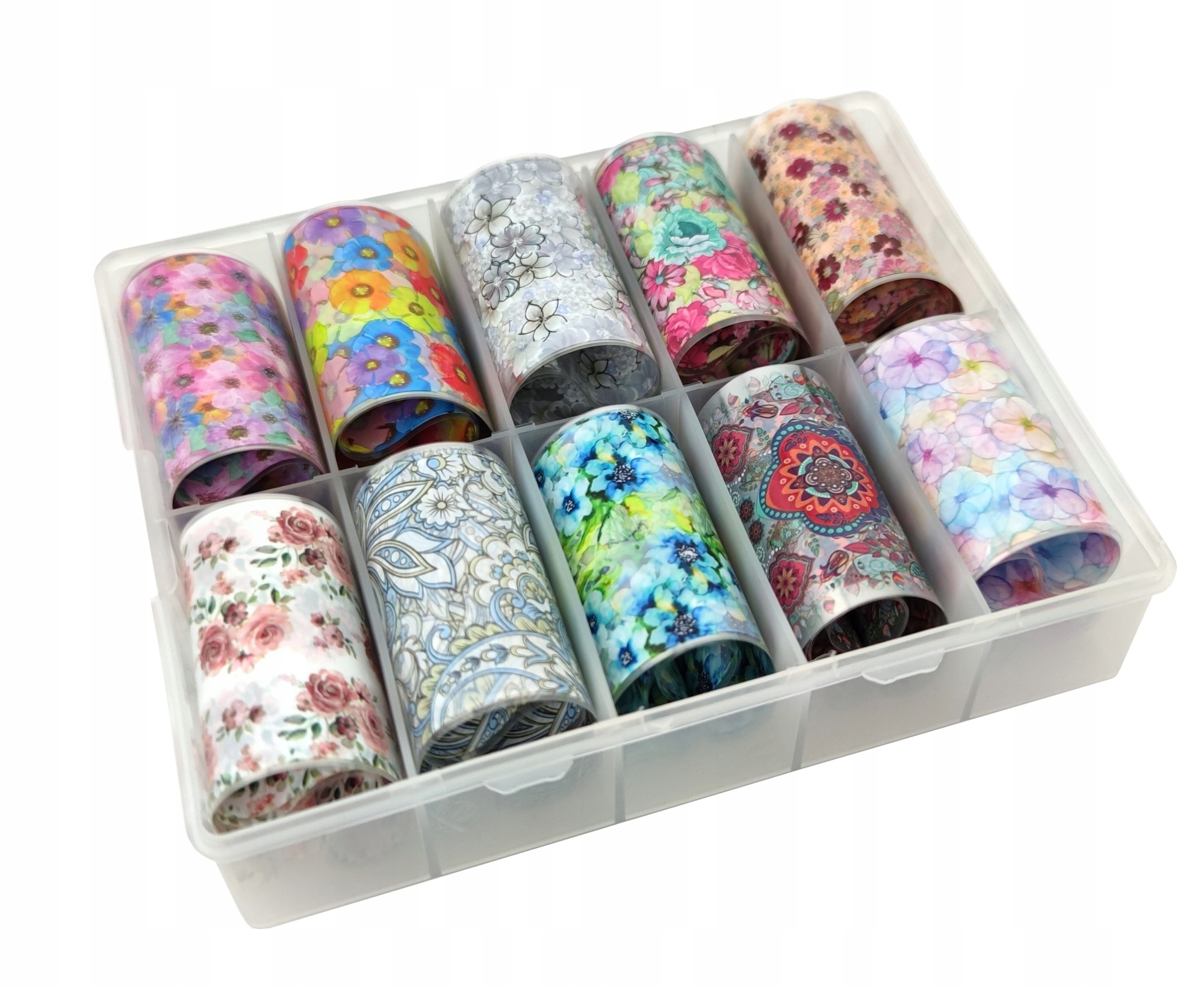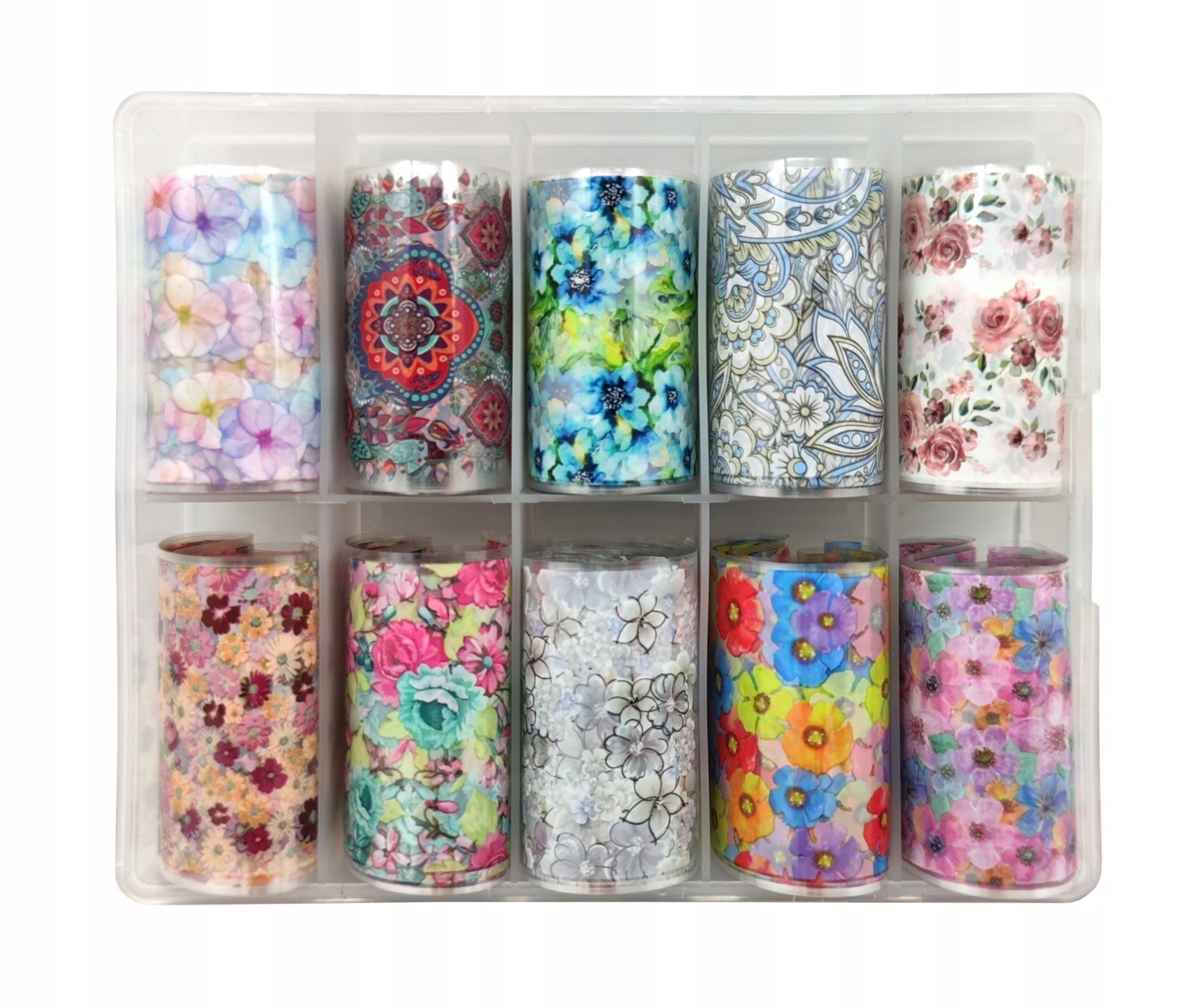 10x ТРАНСФЕРНА ФОЛЬГА 10смx4см НАБІР ЛІТНІ КВІТИ