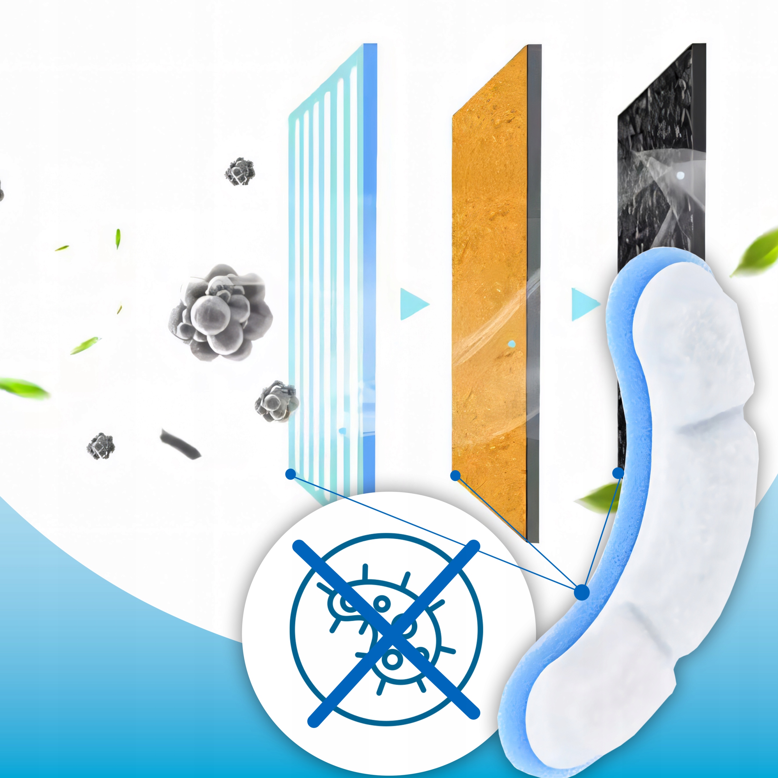 Первый слой из хлопка задерживает более крупные частицы грязи, а слой активированного угля эффективно нейтрализует неприятные запахи и удаляет хлор и другие химические вещества.