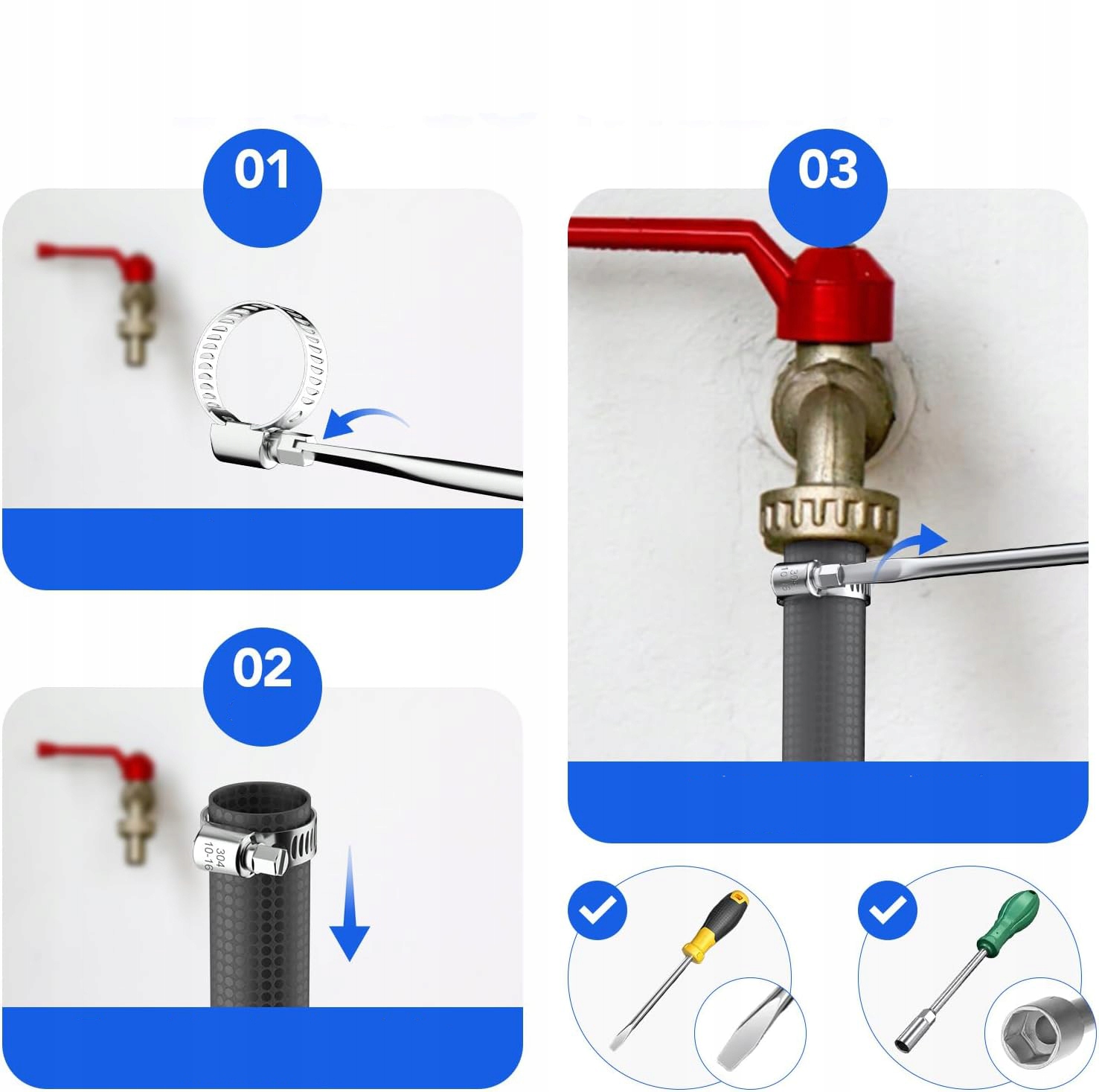 ✅Хомуты из стали 304 станут лучшим выбором для водопроводных, промышленных, автомобильных установок или в более сложных уличных условиях.