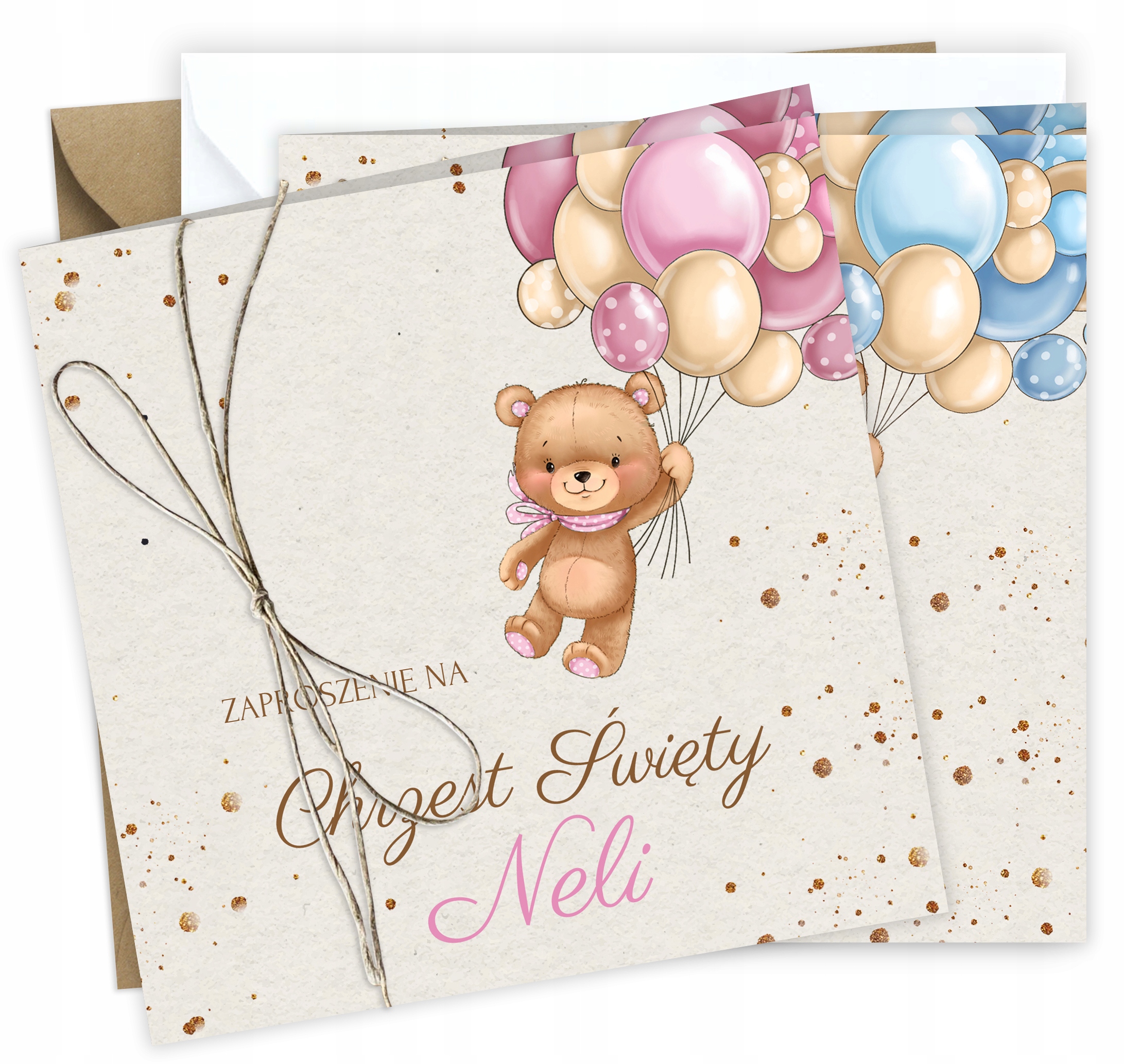 10x ЗАПРОШЕНЬ НА ХРЕЩЕННЯ + Ім'я + Конверт
