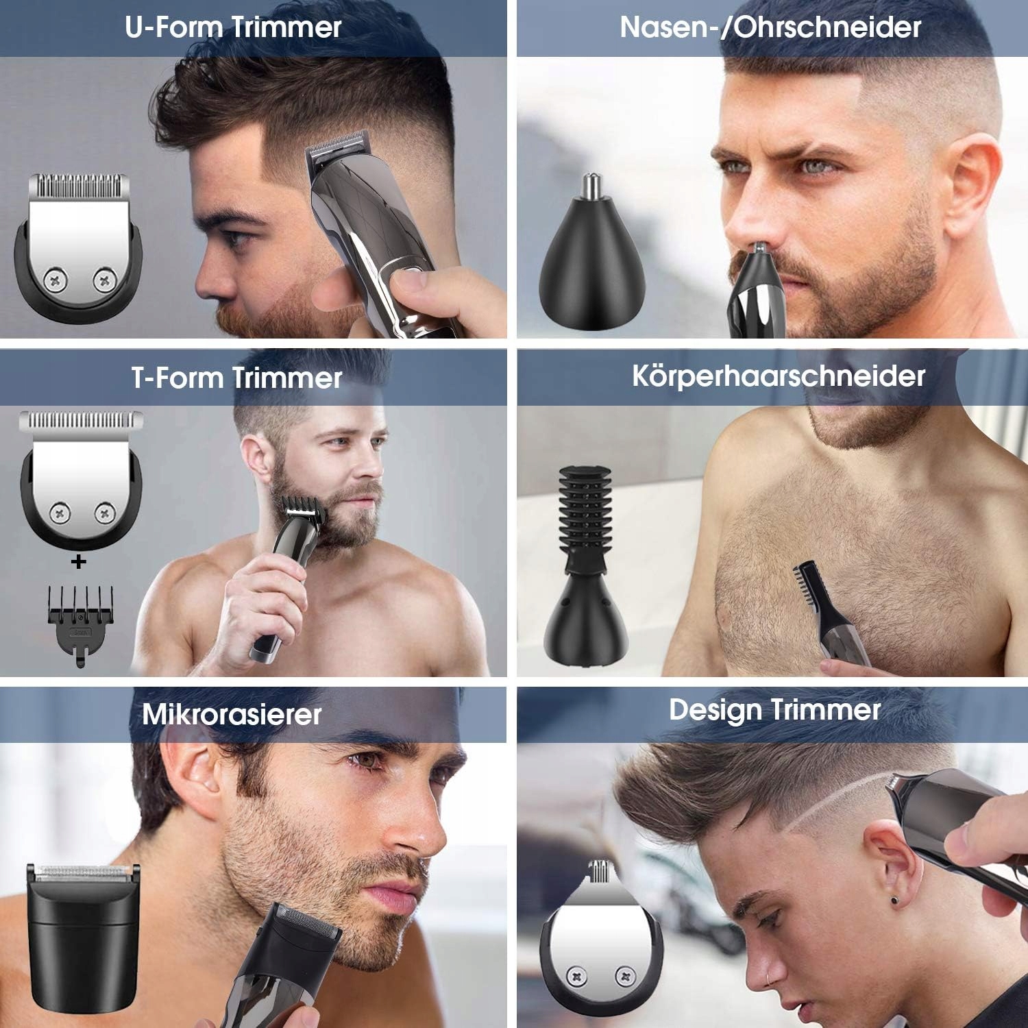 - Многофункциональный набор для ухода за волосами: многофункциональная машинка для стрижки волос VESSTT оснащена 6 различными бритвенными головками и 5 насадками, так что у вас есть устройство для всего: Т-образного и U-образного триммера, микробритвы, носика для стрижки волос. триммер для волос, триммер и триммер для волос на теле, позволяет брить бороду, удалять волосы из ушей, носа и тела, укладывать бакенбарды, гравировать волосы. Благодаря этому прибор VESSTT вам понадобится только для ежедневного ухода за волосами.