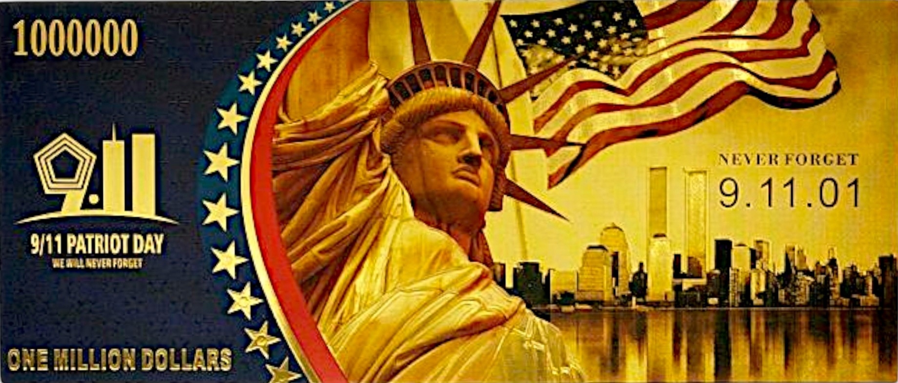 11 сентября WTC Anniversary Beautiful Collector's Banknote с PVC Gift 9.11