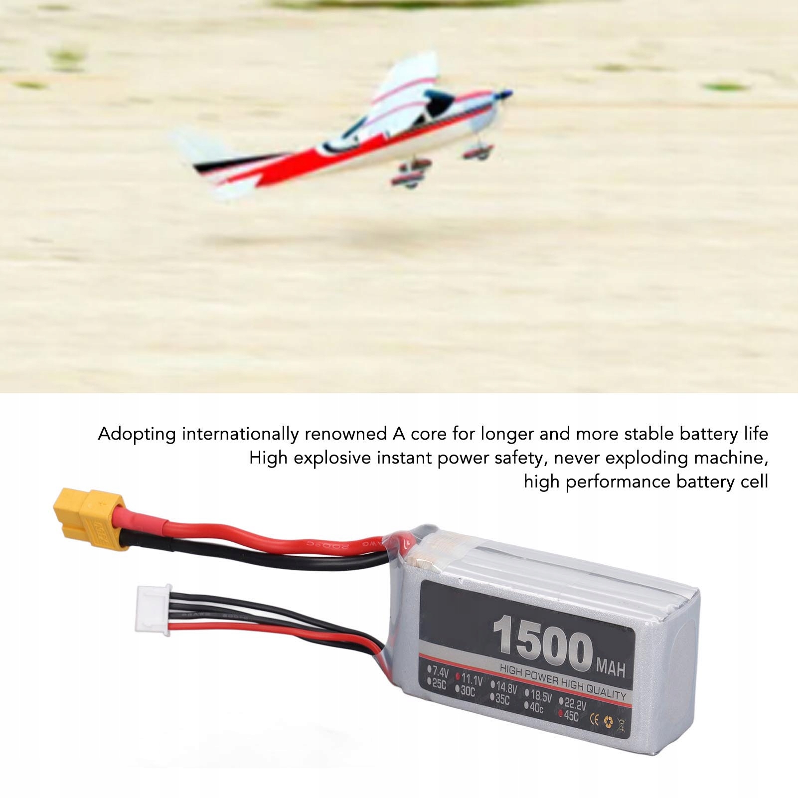 1. Источник питания высокого напряжения: непревзойденная мощность и бесконечная энергия. Обеспечивает мощную и надежную энергию для вашего радиоуправляемого самолета. Напряжение 11,1 В обеспечивает высокие летные характеристики. 2. Высокая скорость разряда. Благодаря скорости разряда 45°C этот аккумулятор обеспечивает прирост мощности для быстрого ускорения и маневрирования на высоких скоростях. 3. Долговечность: емкость 1500 мАч обеспечивает более длительное время полета, что обеспечивает более приятные и непрерывные полеты. 4. Безопасность: LiPo аккумулятор емкостью 1500 мАч, 45C, 3S, 11,1 В, встроенный механизм безопасности обеспечивает безопасную зарядку и использование. Никогда не оставляйте аккумулятор без присмотра во время зарядки. Используются элементы класса A для более длительного и стабильного срока службы, обеспечивая безопасную и безвзрывную подачу энергии с помощью высокоэффективных элементов. 5. Совместимость: липо-батарея 3S 1500 мАч RC оснащена оригинальными разъемами, разработанными для моделей RC, с силиконовым проводом AWG и корпусом из алюминиевой фольги PP. Совместим с дроном, FPV, радиоуправляемым самолетом, радиоуправляемым вертолетом, радиоуправляемой лодкой, только если напряжение, размеры и вилка совпадают, тогда он подойдет.