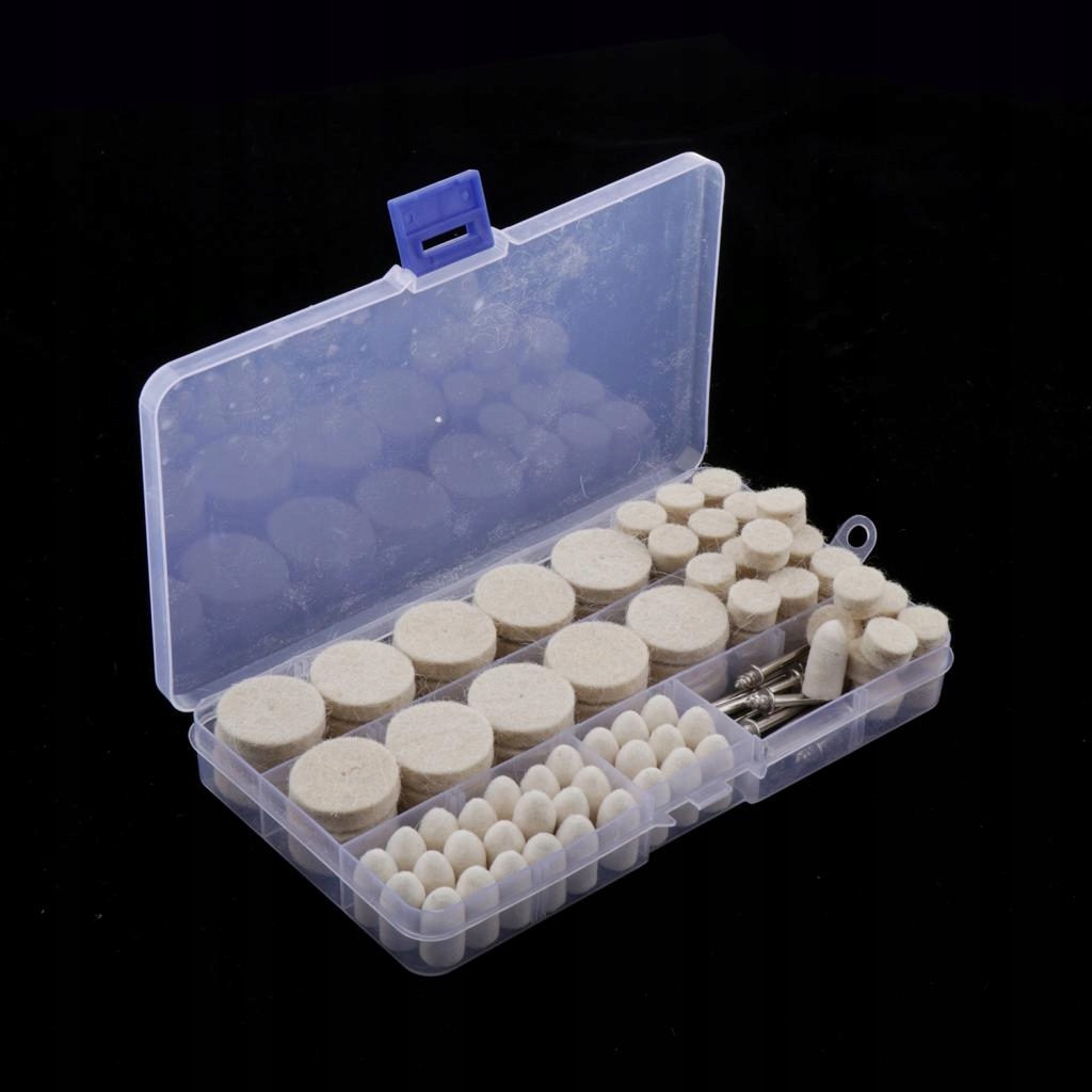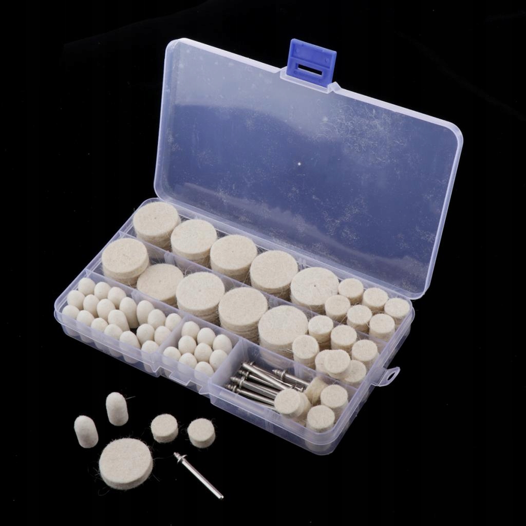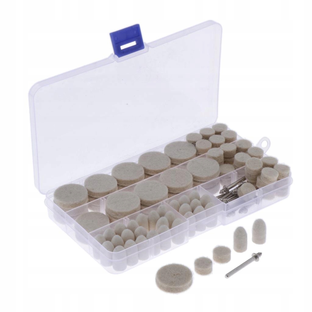 Упаковка: в одной пластиковой коробке содержится 12 шт. хвостовиков и 110 шт. кусочки шерстяных шлифовальных машин (большой цилиндр 30 шт., маленький цилиндр 50 шт. и конус 30 шт.)