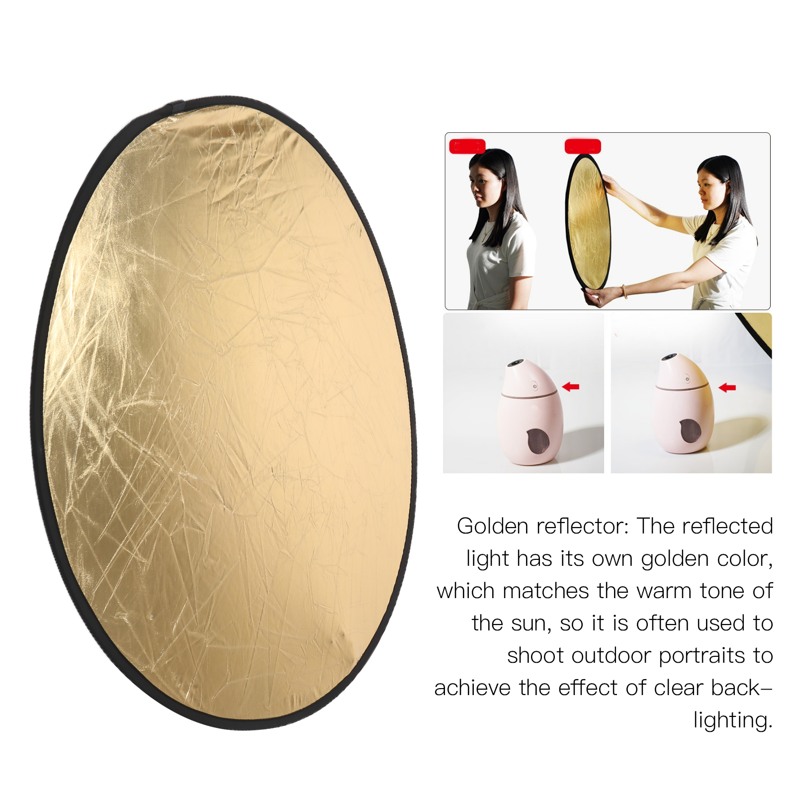 2. Золотой отражатель отражает свет своим золотистым цветом, который адаптируется к теплому цвету солнца, поэтому его часто используют для портретов на открытом воздухе, чтобы получить эффект четкой подсветки.