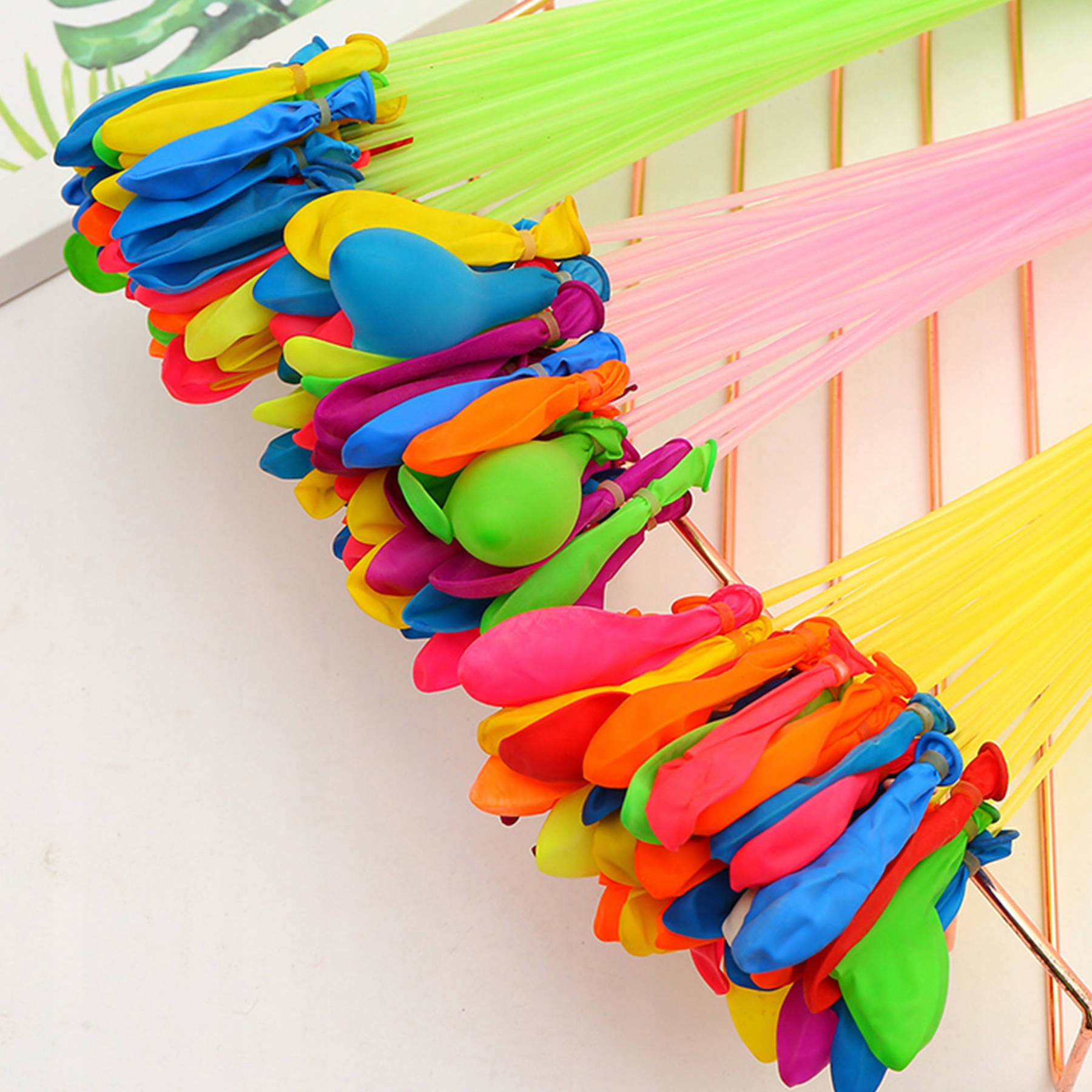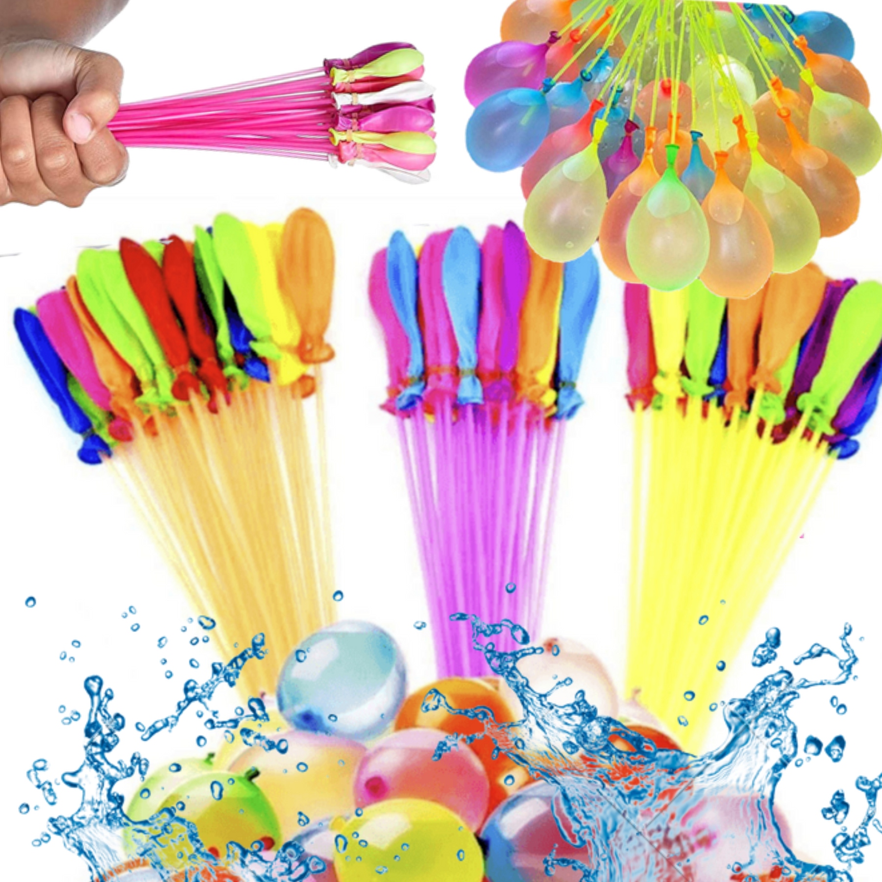 Счастливые воздушные шары - это очень весело для всей семьи! Идеально в жаркие дни, в саду, на пляже, в парке или в бассейне! Заполните 111 водяных воздушных шаров "счастливых баллонов" менее чем за 60 секунд и начните водяную битву! Попрощайтесь с стрессом и утомительным связыванием всех воздушных шаров. Каждый воздушный шар прикреплен к соломе с эластичной лентой, которая после заполнения воздушных шаров автоматически нажимается на воздушном шаре.