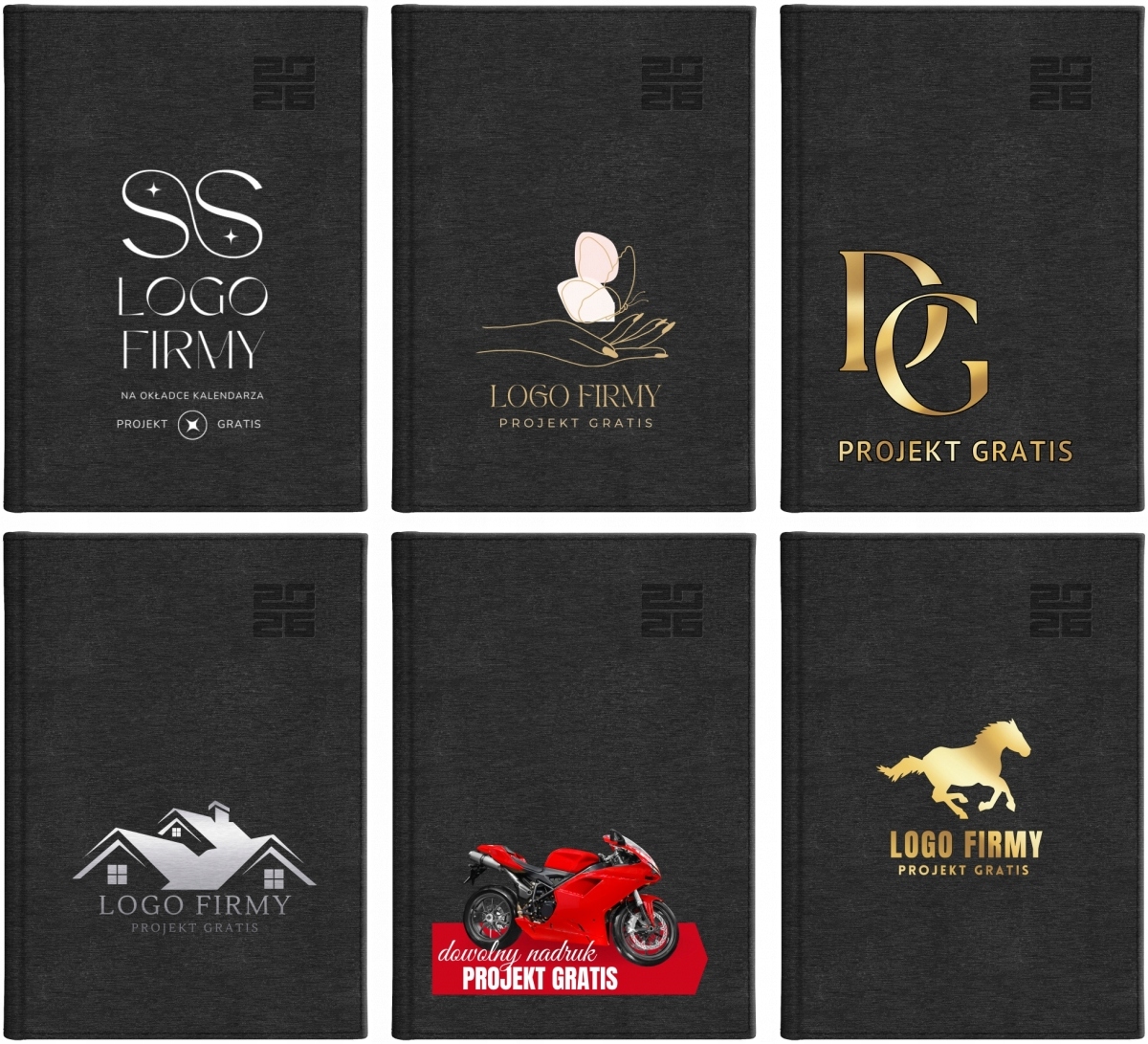 Книжный календарь 2026 B5, еженедельные регистры на белой бумаге, черный АЛЮМИНИЕВЫЙ переплет С ПРИНТОМ ЛОГОТИПА