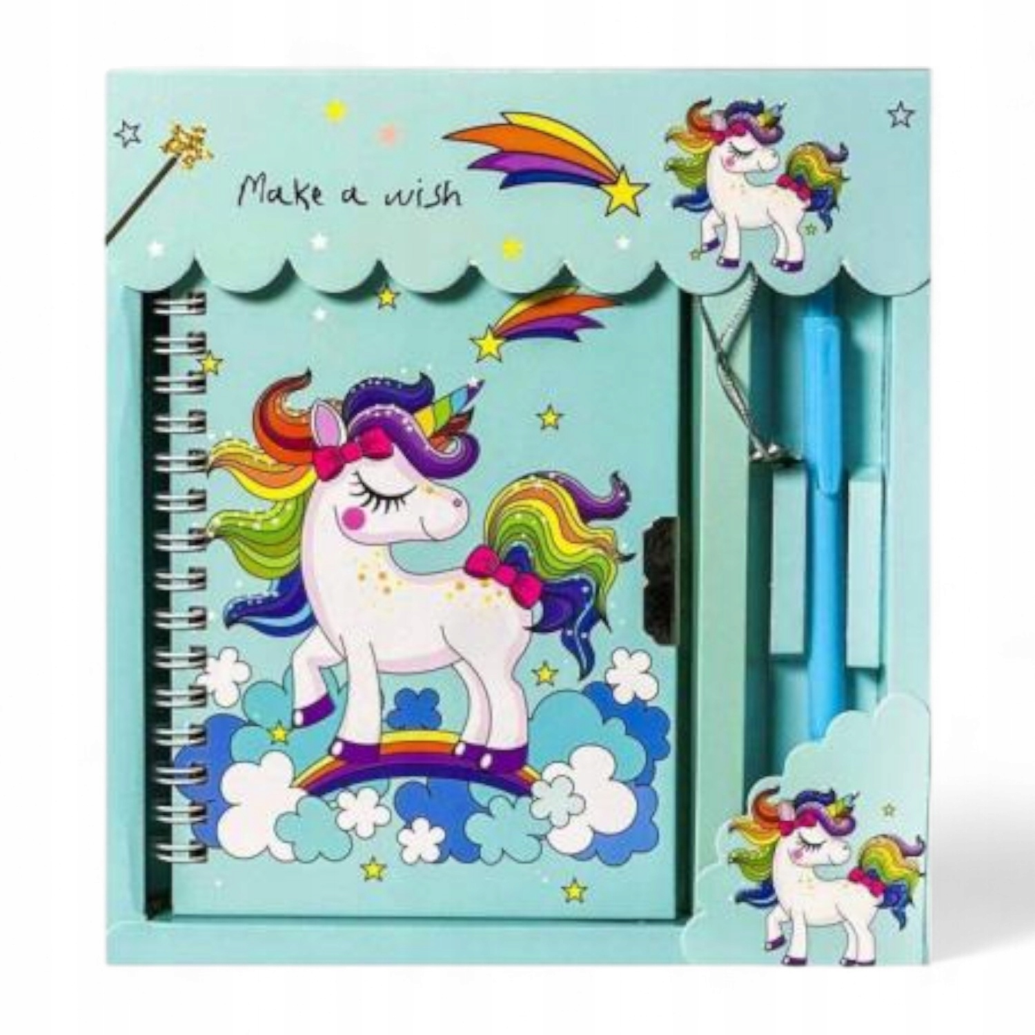 • Синий «Загадай желание»: с единорогом на облаках, радугой и звездами, с мотивирующей надписью «Загадай желание».