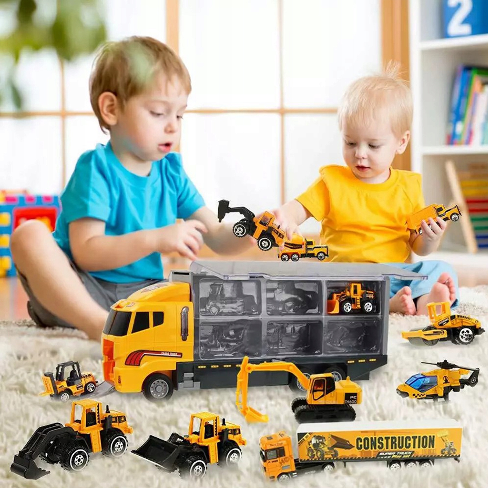12in1 Toy Truck Transporter Car Construction Vershicles Helicopter