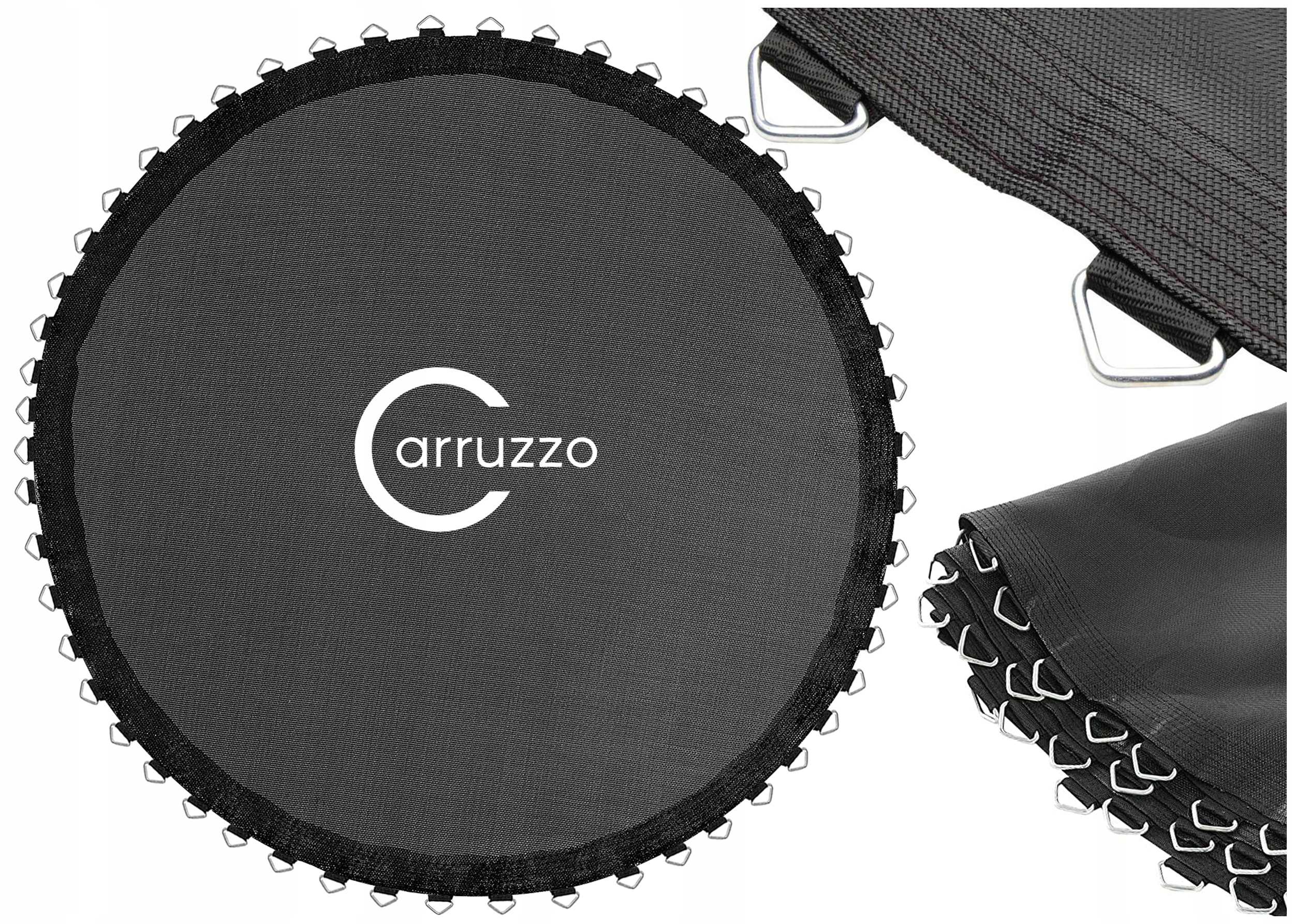 Благодаря 72 сплошным металлическим глазам , коврик стабильно прикреплен к структуре батута, что гарантирует его прочность и долгую жизнь .
