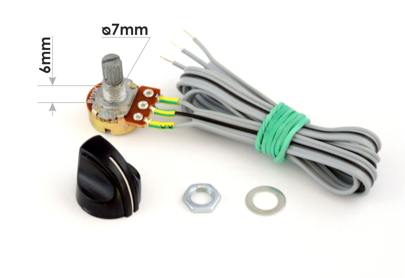 <ли>Регулировка максимальных оборотов(40-100%) - позволяет ограничить максимальные обороты двигателя или мощность, подаваемую на устройство, это дает возможность перманентно ограничить максимальные обороты управляемого двигателя или для безопасного управления двигателем с номинальным напряжением меньшим, чем напряжение установки (например, управление двигателем 12 В в установке 24 В, в такой ситуации, когда мы ограничим мощность наполовину с помощью потенциометра, двигатель будет работать так, как будто он питался от сети 12 В), главный потенциометр на кабеле будет работать от установленного минимального значения до установленного максимального значения