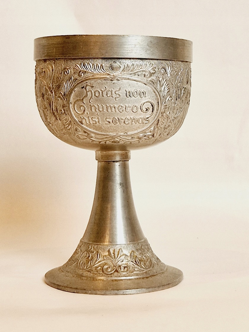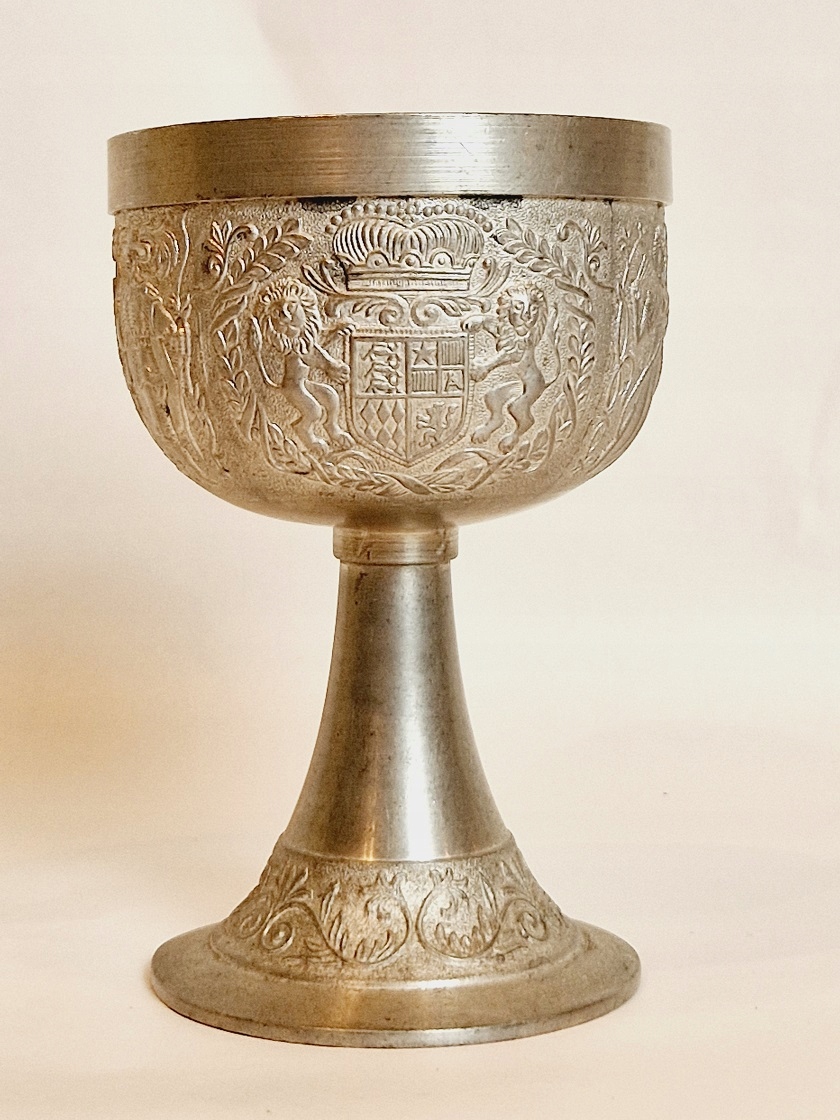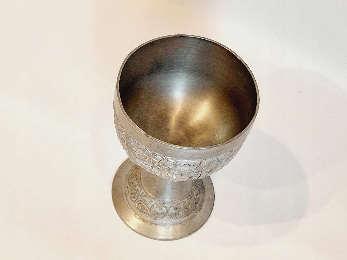 12,6 см / 254 г - ЗНАК. BMF МАСИВНА, БАГАТО ДЕКОРИРОВАНА ЖЕРДЯНА ЧАШКА /6037