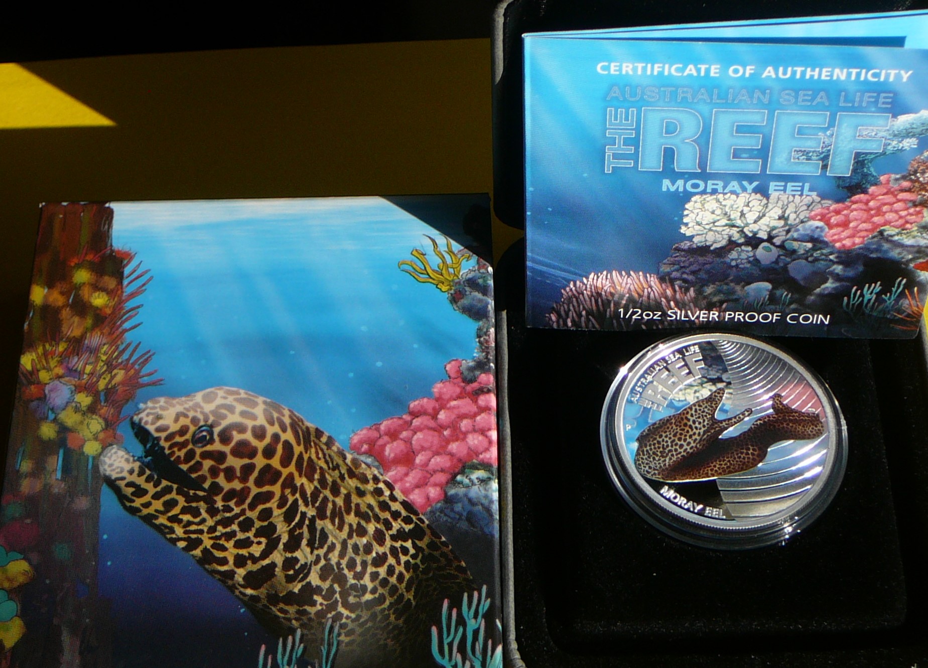 НА АУКЦИОНЕ КРАСИВАЯ ОРИГИНАЛЬНАЯ КОЛЛЕКЦИОННАЯ СЕРЕБРЯНАЯ МОНЕТА - 1/2 ДОЛЛАРА - АВСТРАЛИЯ 2010 ГОДА - РЫБА МУРЕНА - из серии: МОРСКАЯ АВСТРАЛИЙСКАЯ МОРСКАЯ ЖИЗНЬ / ЖИЗНЬ РИФ - ЧИСТОЕ СЕРЕБРО 999 пробы b> - 1/2 УНЦИИ - PROOF - МОНЕТНОЕ ИЗДЕЛИЕ + СЕРТИФИКАТ ПОДЛИННОСТИ + ФОРМАТ + КАРТОН - РЕДКОСТЬ - МАЛОЕ ИЗДАНИЕ - РЕКОМЕНДУЕТСЯ - НА ДРУГИХ АУКЦИОНАХ МОНЕТЫ ИЗ ЭТОЙ СЕРИИ - ПОСМОТРЕТЬ > p>