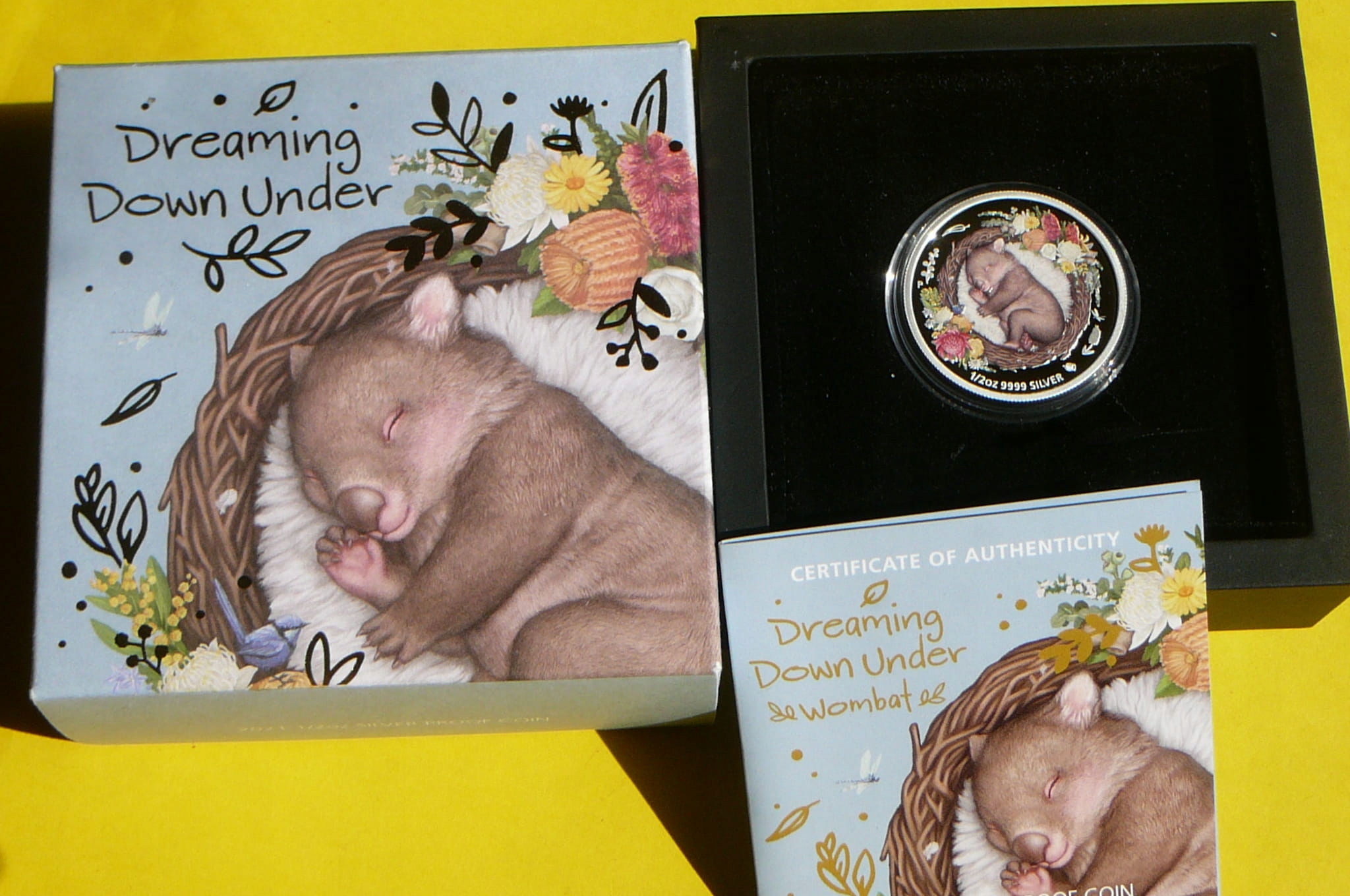 1/2$ АВСТРАЛІЯ 2021 - СПЛЯЧИЙ ВОМБАТ КОЛЬОР Ag 999