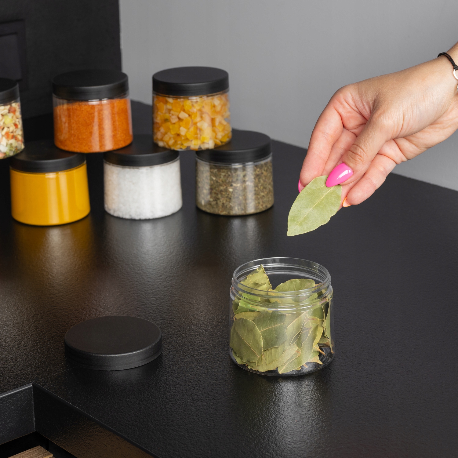 Банки, контейнеры 200мл с черной крышкой, 12 шт