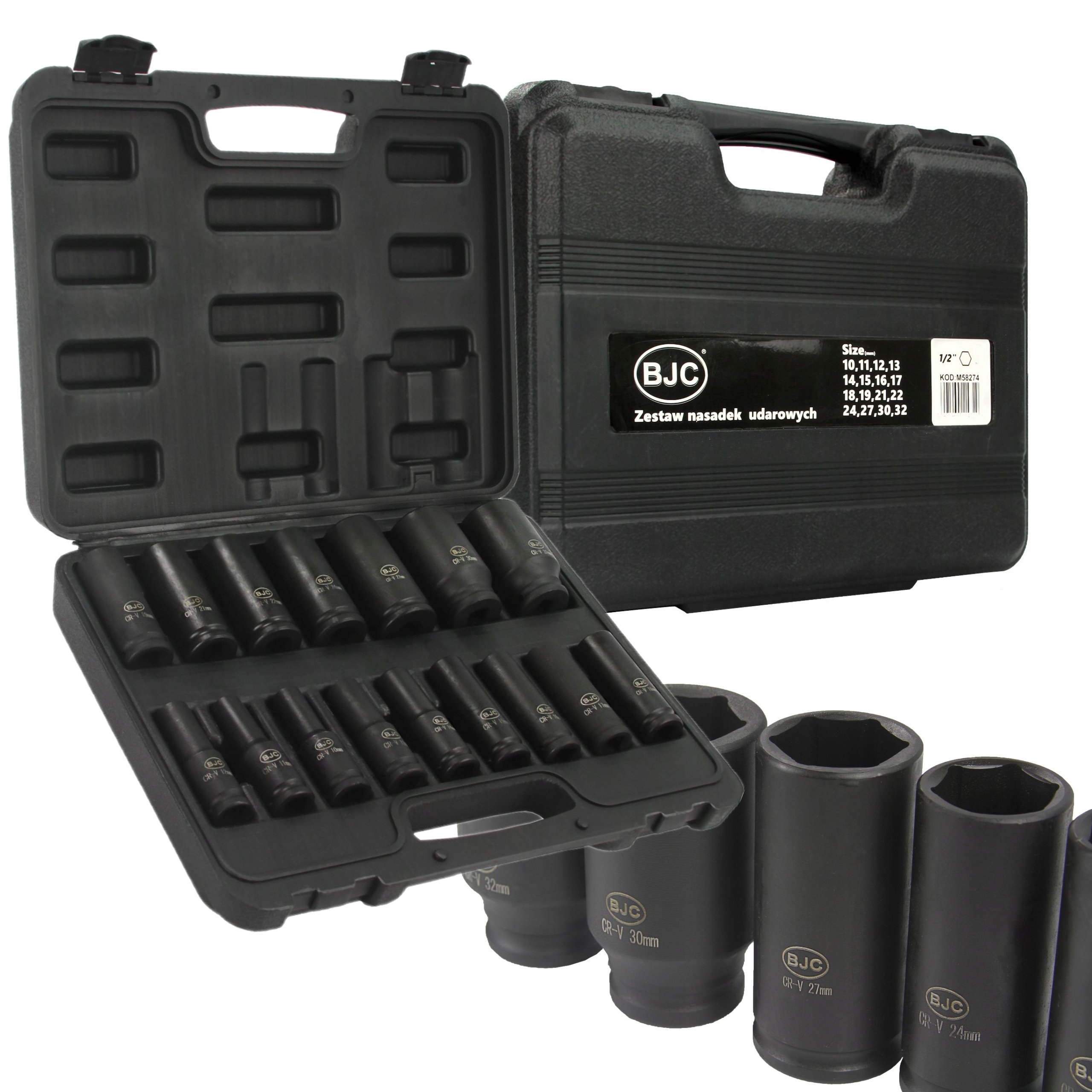 НАБОР ТОРЦЕВЫХ ГОЛОВОК ДЛЯ ТОРЦЕВЫХ КЛЮЧЕЙ BJC 1/2 ДЮЙМА, 10–32 мм