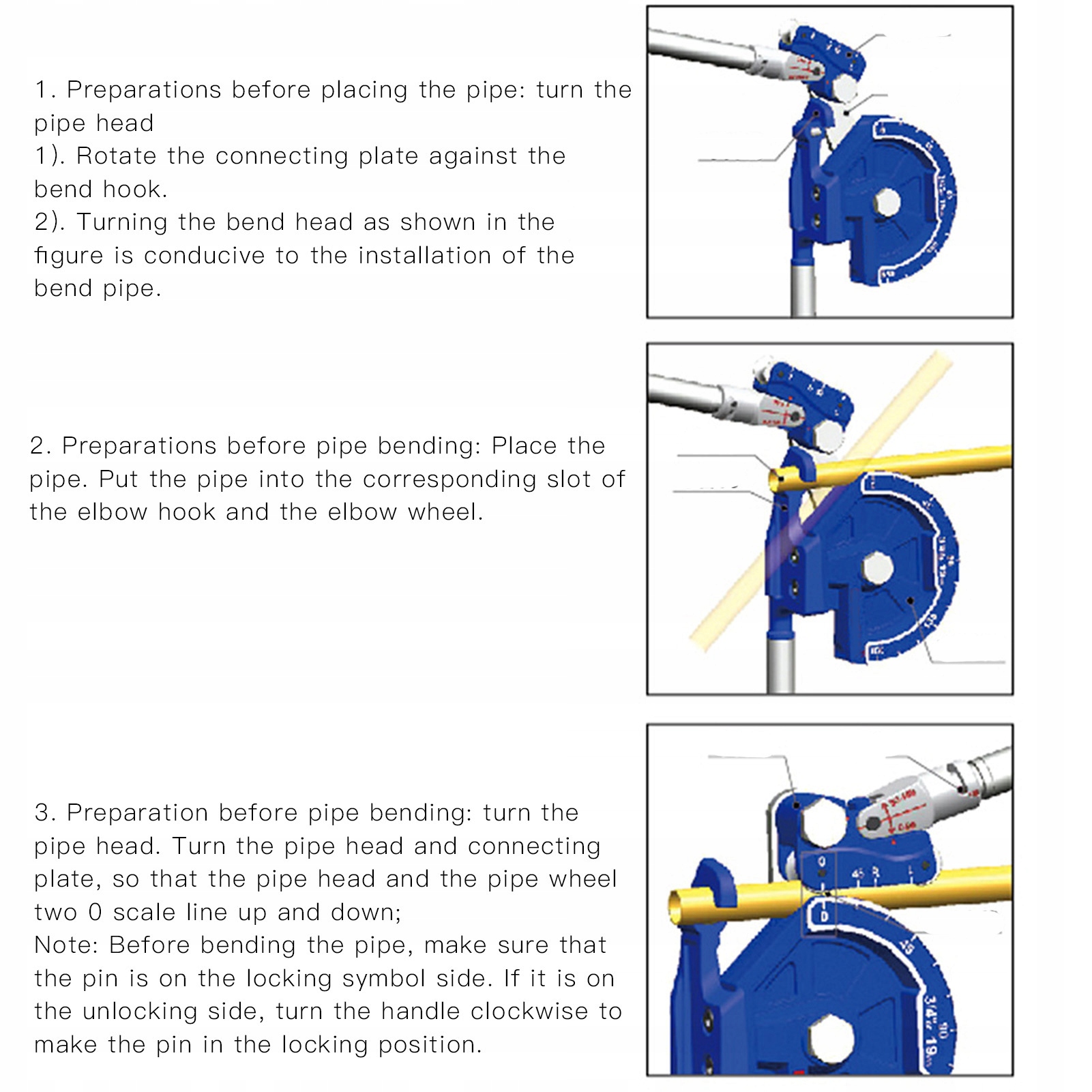 3. Простота в эксплуатации: сначала откройте гибочный станок и поместите трубку. Затем установите шкалу на 0, затем согните и медленно потяните ручку на нужный угол. В конце у вас получится изогнутая трубка.
