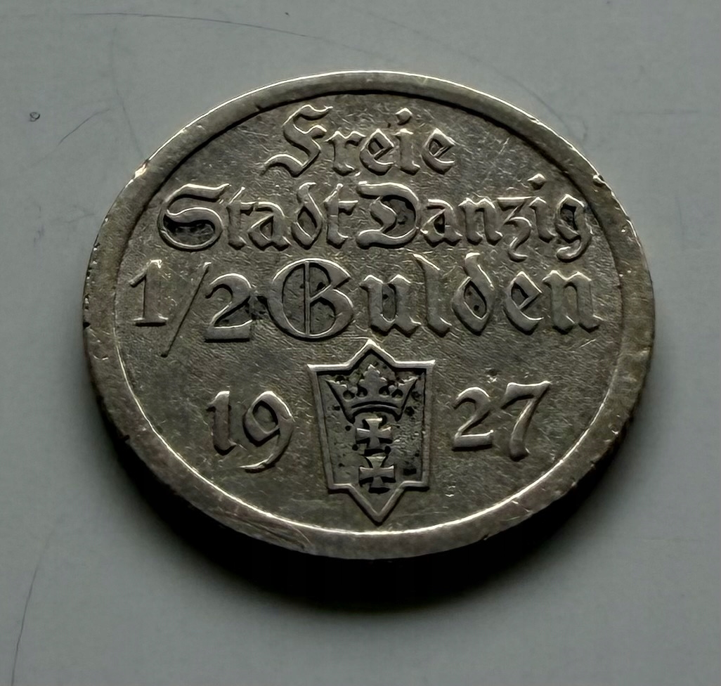 ВОЛЬНЫЙ ГОРОД ГДАНЬСК 1/2 ГУЛЬДЕНА 1927, РЕДКАЯ
