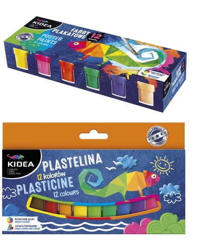 В набор входят: Плакатные краски 12 цветов и Пластилин Kidea 12 цветов.