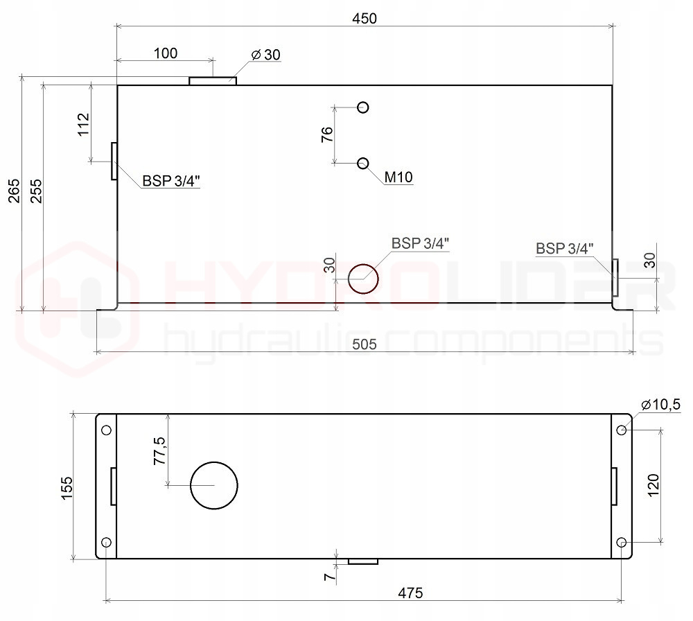 БАК ДЛЯ ГИДРАВЛИЧЕСКОГО МАСЛА 12 Л + ФИТИНГИ