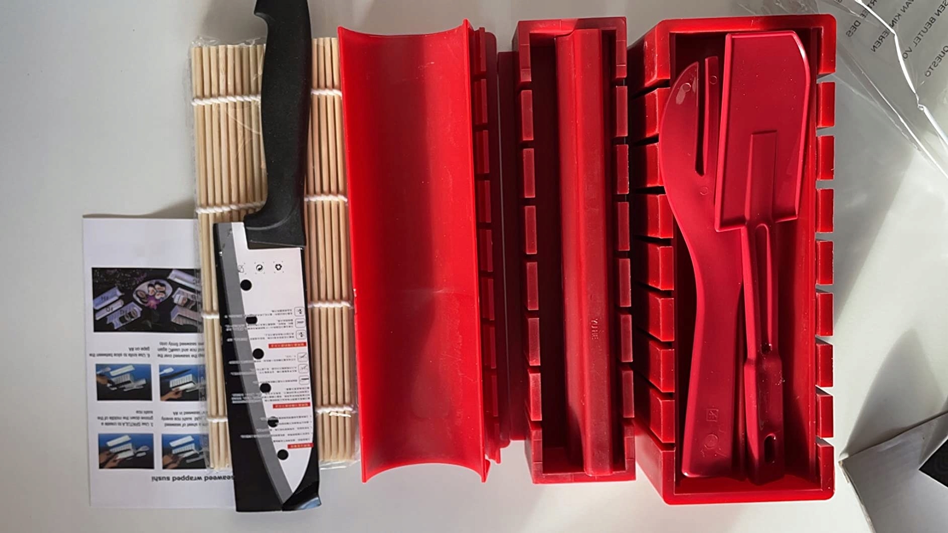 Набор содержит 12 необходимых элементов для приготовления неповторимых суши в домашних условиях. Там вы найдете, среди прочего: бамбуковый коврик для катания, палочки для еды, нож-лопатка и специальная форма для риса.