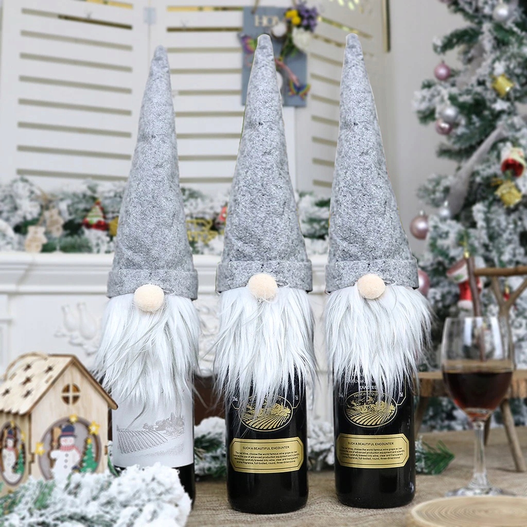 Красивые серые крышки для бутылок с мотивом Санты. Красивое украшение для дома к праздникам.