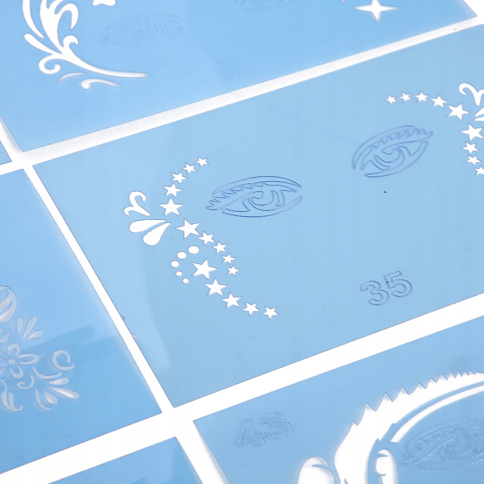 2. Каждый трафарет имеет особый рисунок, поэтому вы можете использовать его отдельно или в сочетании с другими трафаретами для рисования лица, чтобы создать уникальный дизайн макияжа.