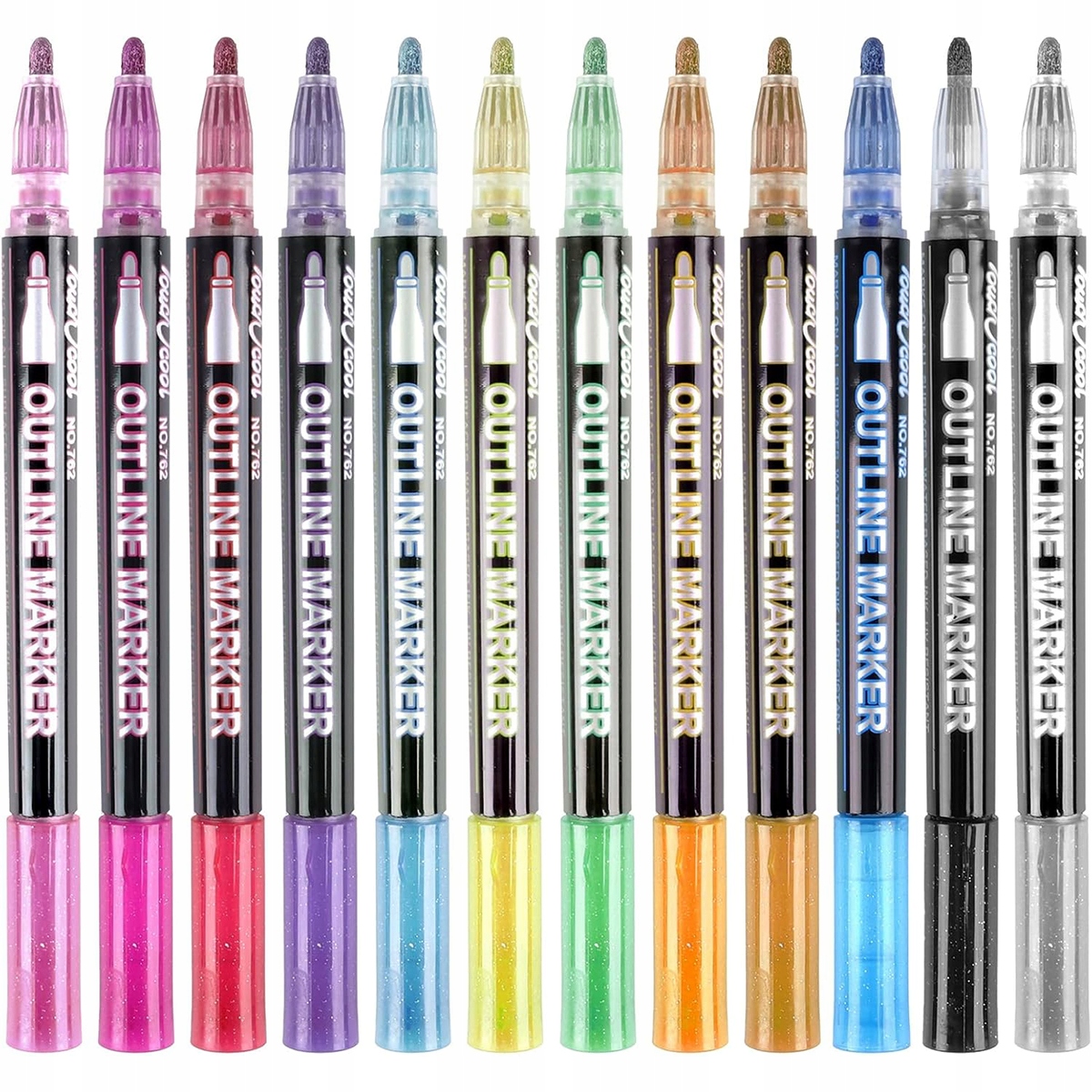 YOUKUKE Подарки для девочек, ручки с блестками Волшебные ручки Наполнитель для адвент-календаря для детей Подарки для детей 4–12 лет, 12 контурных ручек Волшебные металлические ручки для скрапбукинга Набор для рукоделия