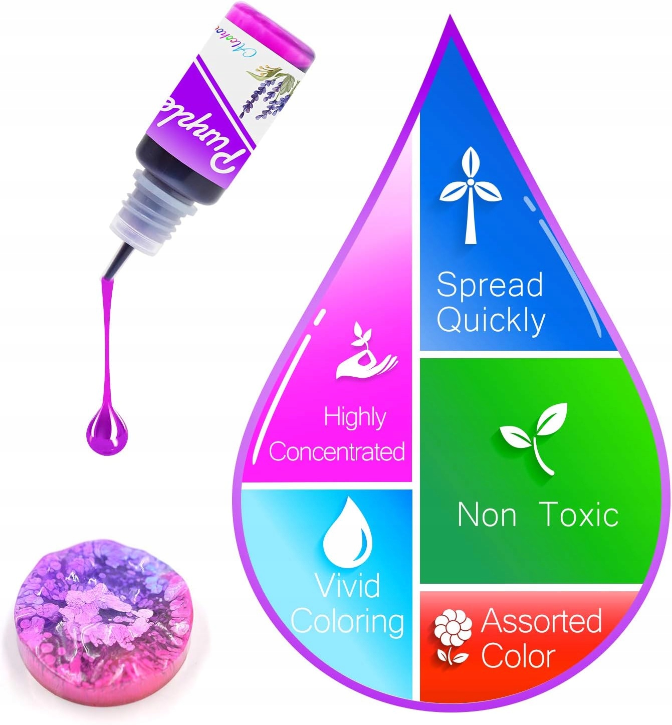 ➡ Наши чернила на основе спирта характеризуются высокой концентрацией, которая обеспечивает контроль над цветами и сводит к минимуму отвлечение в смоле. Их легко смешивать с алкоголем, получение лучшего эффекта распространения и более светлых цветов!