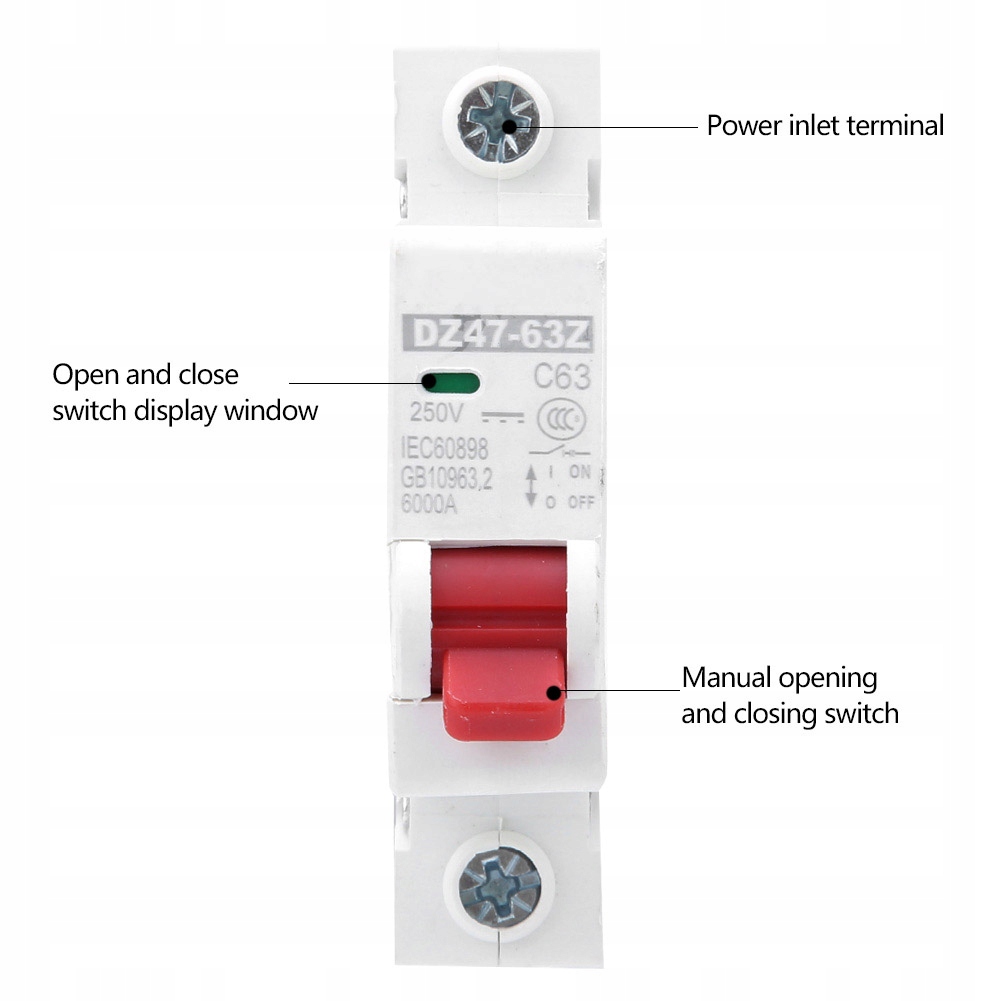 12 шт. DZ47-63Z DC250V 1P MCB воздушный автоматический выключатель защитный выключатель для фотоэлектрических систем63A