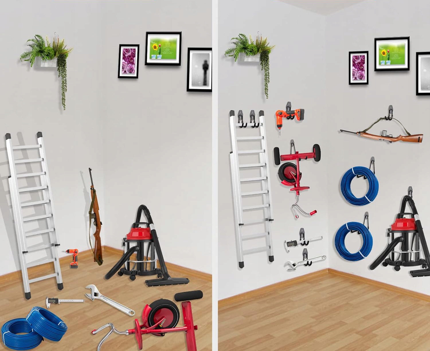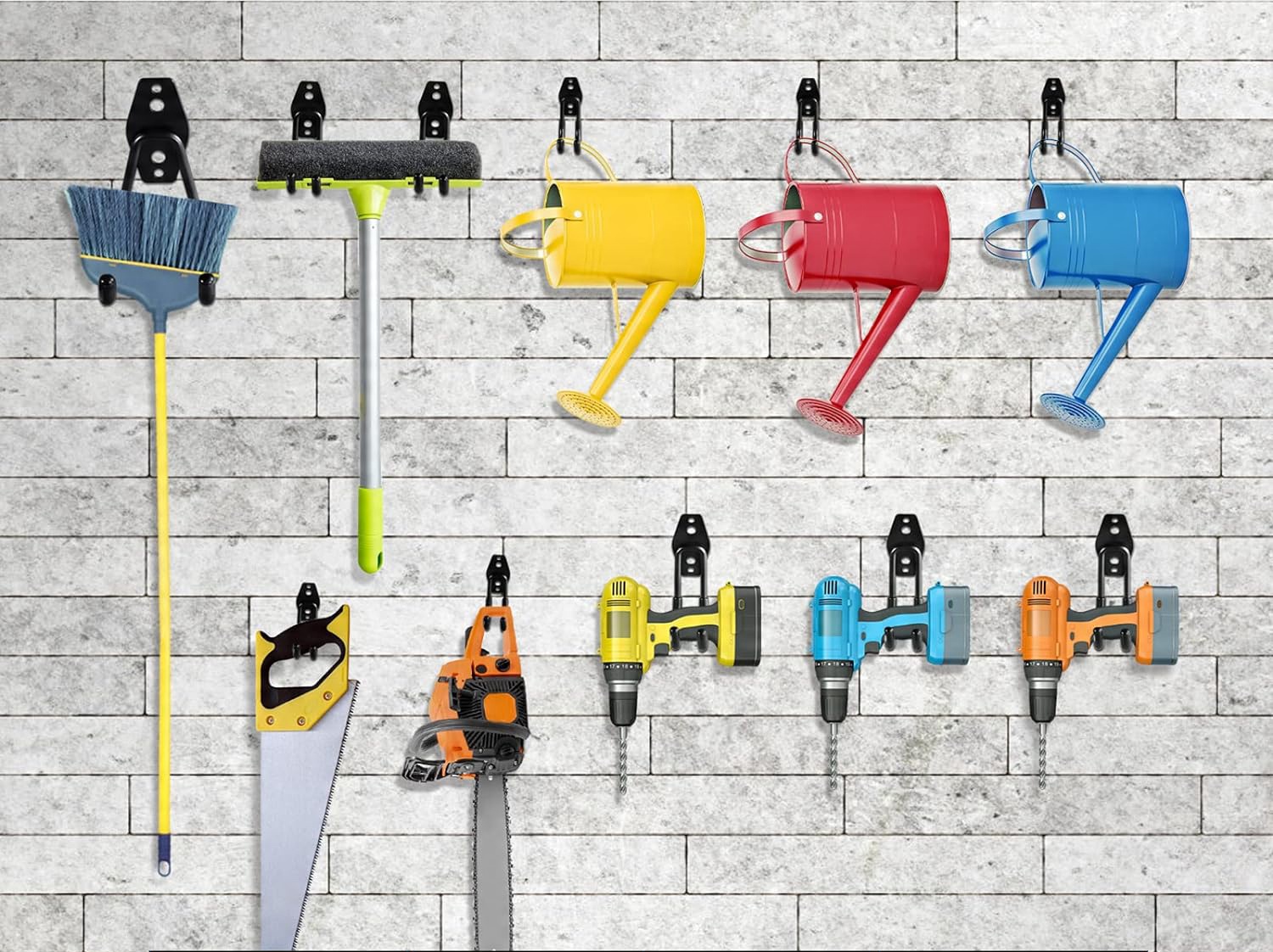 <ул>Предложите решение для системы хранения в вашем гараже. Расширьте свой гараж с помощью нашего выбранного набора крючков для хранения, которые могут вмещать различные инструменты и надежно крепятся. Например, лестницы, садовые инструменты, электроинструменты, велосипеды, лопаты, метлы, самокаты, средства для борьбы с сорняками или сыпучие предметы.