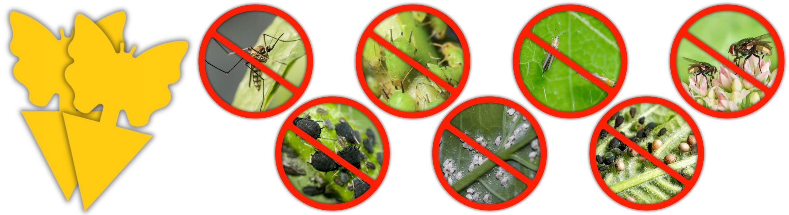 Бабочка-липучка чрезвычайно эффективна в привлечении и ловле таких вредителей, как тля, жужелицы и трипсы. Благодаря специальному клеевому покрытию быстро уничтожаются вредители, что позволяет защитить растения без применения пестицидов.