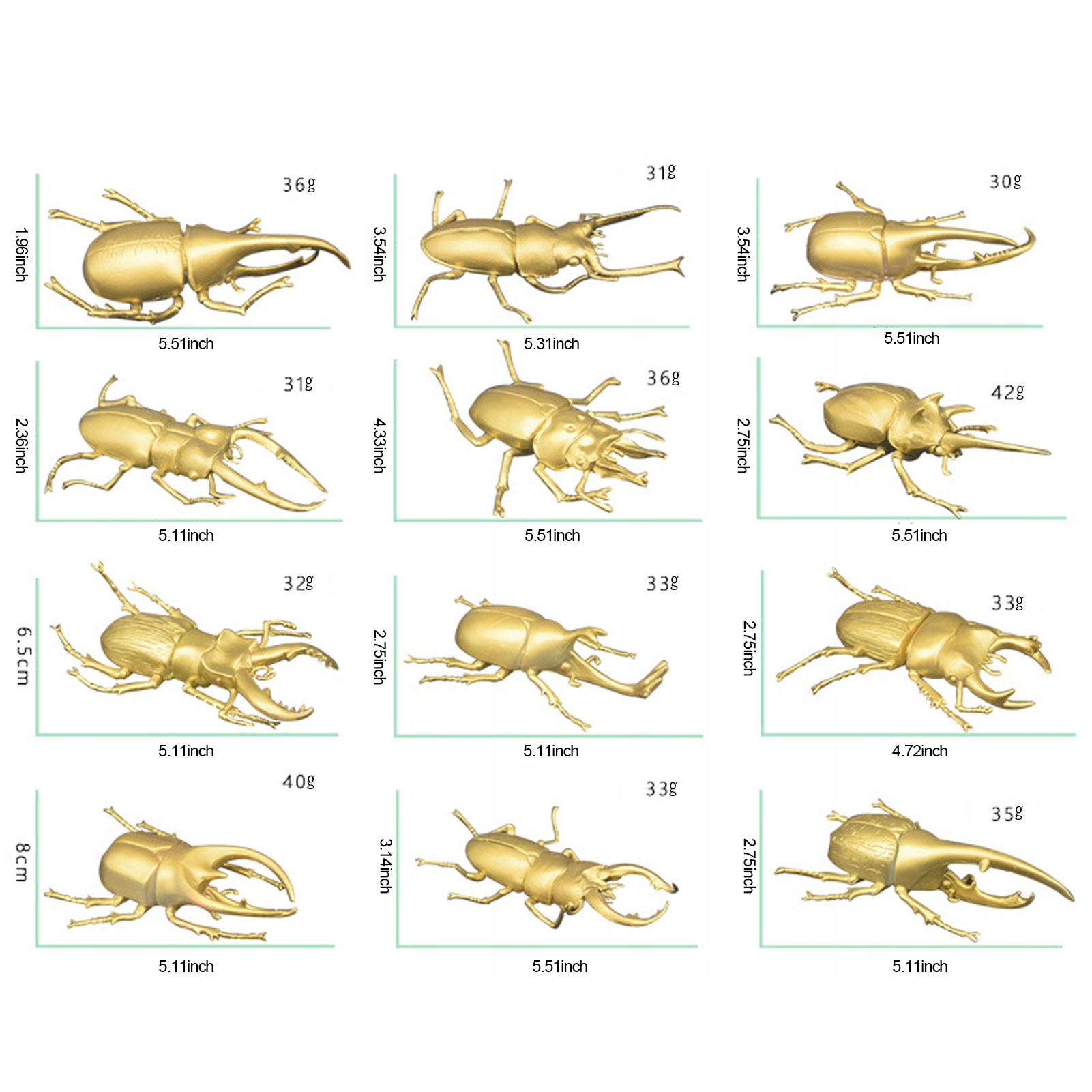 1. Характеристики: В комплект входят 12 золотых насекомых разной формы, изысканный дизайн и имитация внешнего вида.