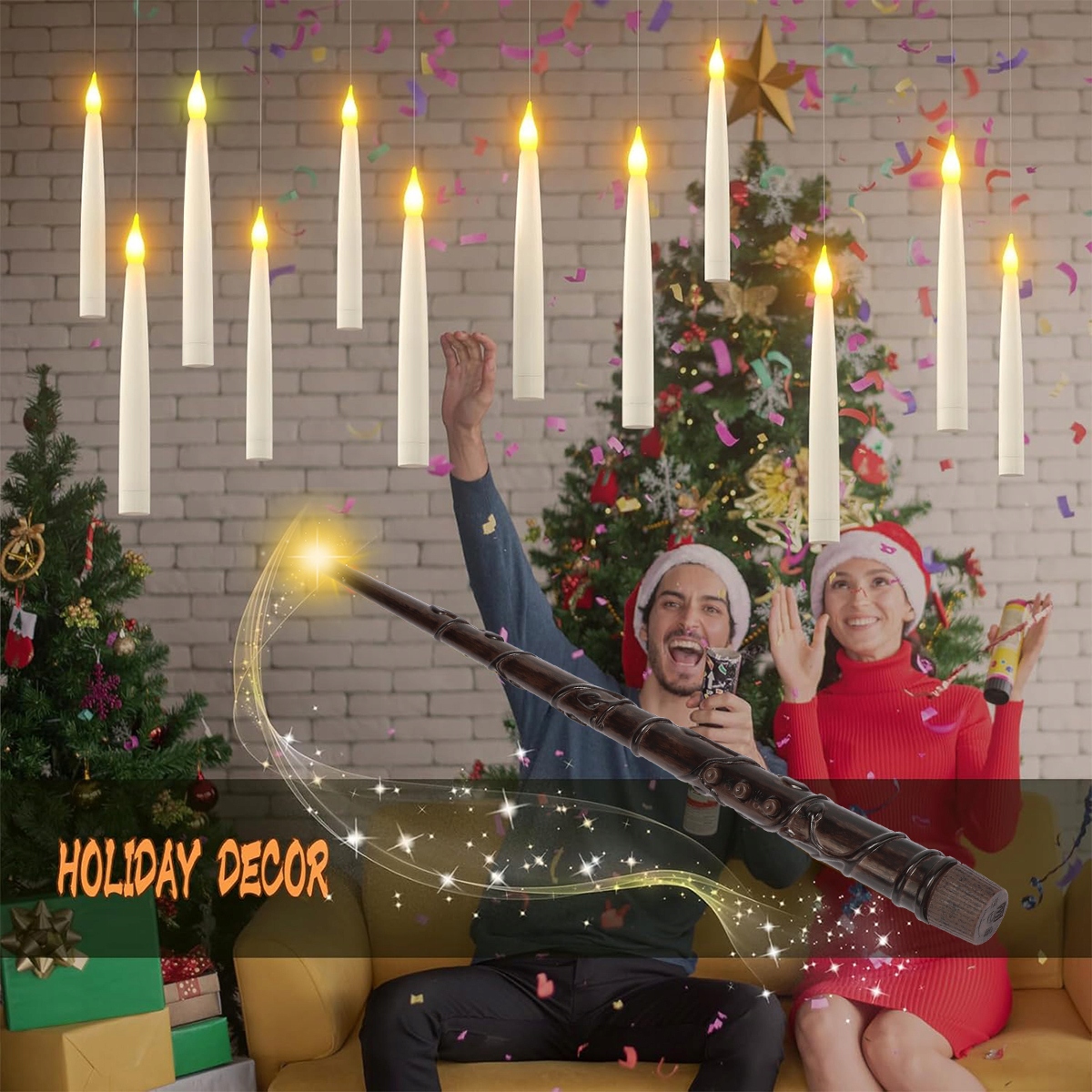 🕯️🕯️Мерцающая светодиодная свеча с волшебной палочкой, пультом дистанционного управления, теплым светом, украшением на Рождество и Хэллоуин🕯️🕯️
