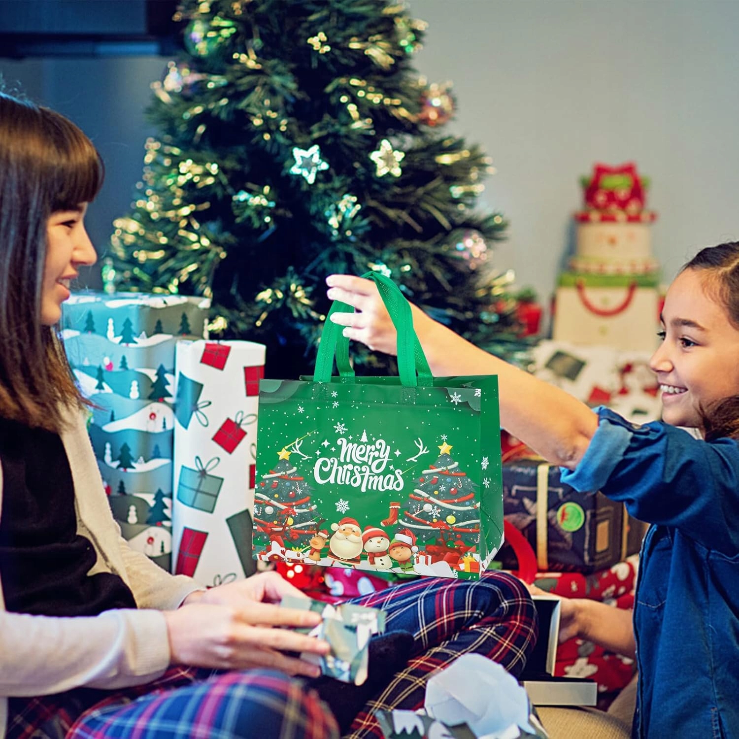 12 шт. Рождественские подарочные пакеты, многоразовые сумки с ручками, нетканый материал, большие сумки для покупок, на Рождество, вечеринку, свадьбу, день рождения, в подарок