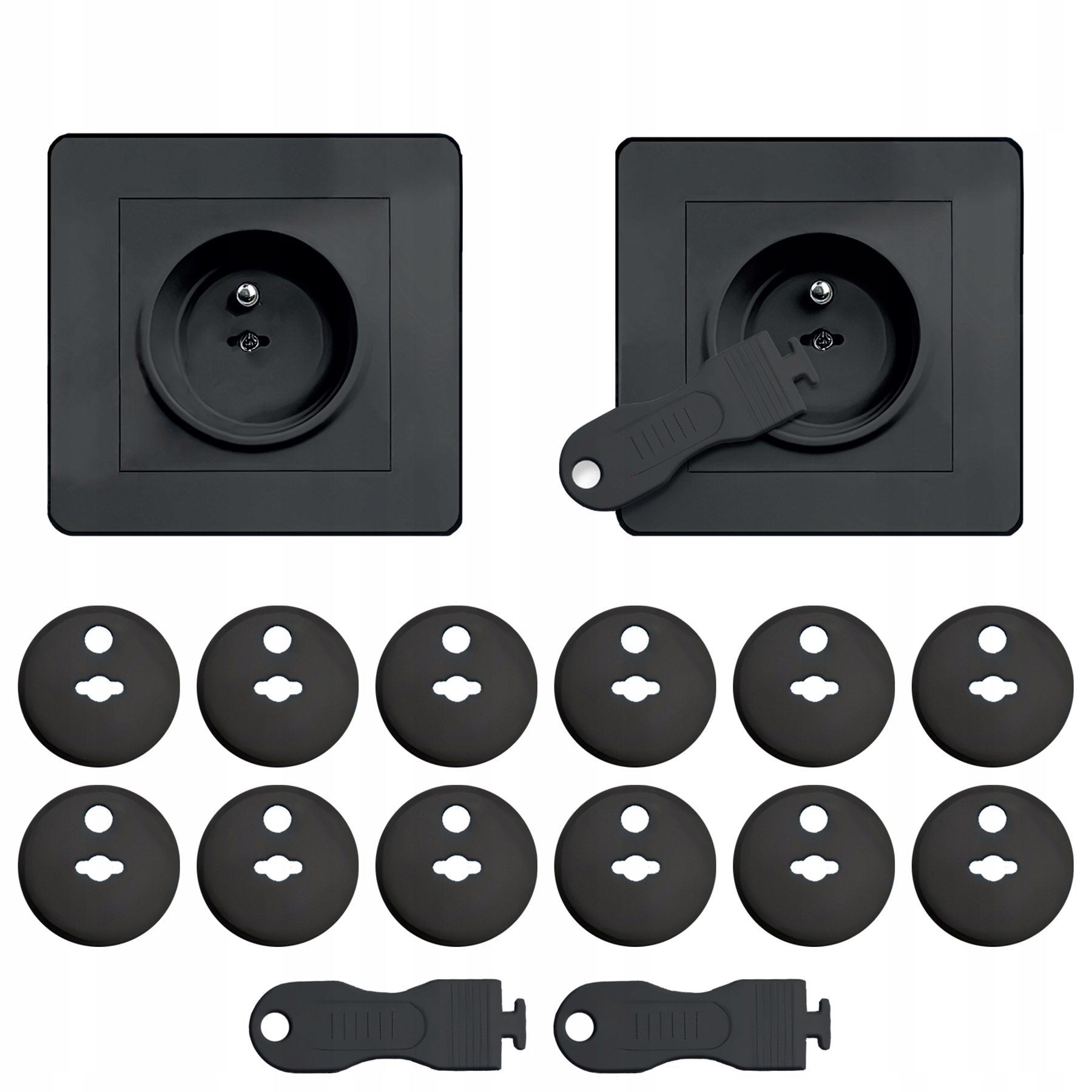 Крышки розеток с защитой от детей, 12 шт., черные SIPO