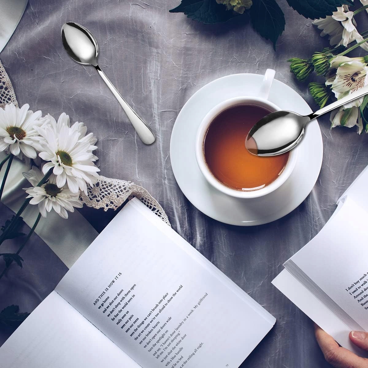 🥦【Серебряные столовые ложки, 12 шт.】 Ложки из нержавеющей стали, 12 шт. подходят для столовой посуды, кофейных ложек, ложек для молока и ложек для напитков. Мини-ложки, подходящие для питья кофе. Размер чайных ложек 17*3,5 см.