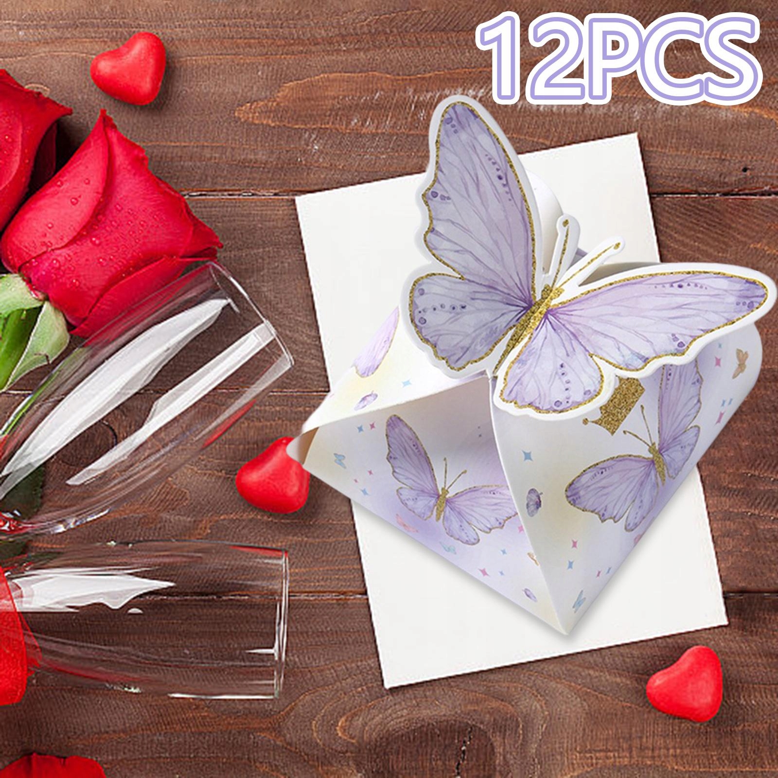 12 szt. Motylowe pudełka na upominki, pudełka na smakołyki na przyjęcie, fioletowe wesele