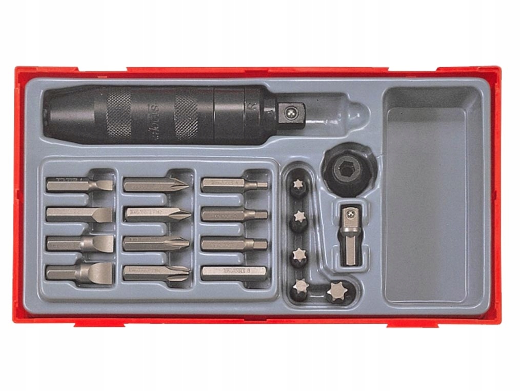 Набор включает в себя отвертку 1/2 удара, прикрепление пещер, переходной разъем 5/16 "- 3/8" и 17 заменяемых пещер. Поставляется в контейнере из пластика с отсоединенной крышкой. Инструменты.