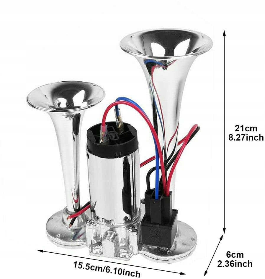 🚗🚗 [супер громко] воздушный компрессор и больший катушка может привести к более сильному давлению воздуха, что означает, что двойной рог создает более громкий и более четкий звук. Автомобильный рог использует высококачественную хромированную цинк и алюминиевый, твердый и прочный, устойчивый к износу и коррозии, обеспечивая долгую жизнь.