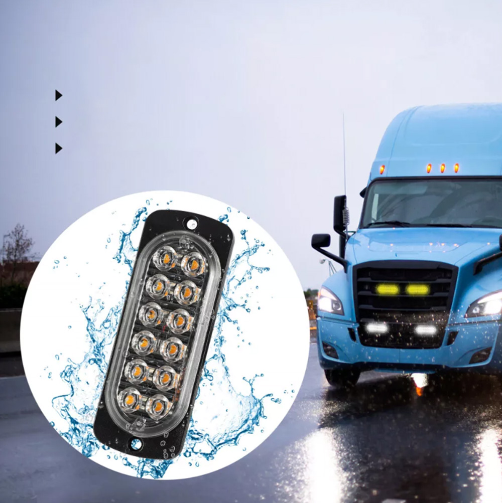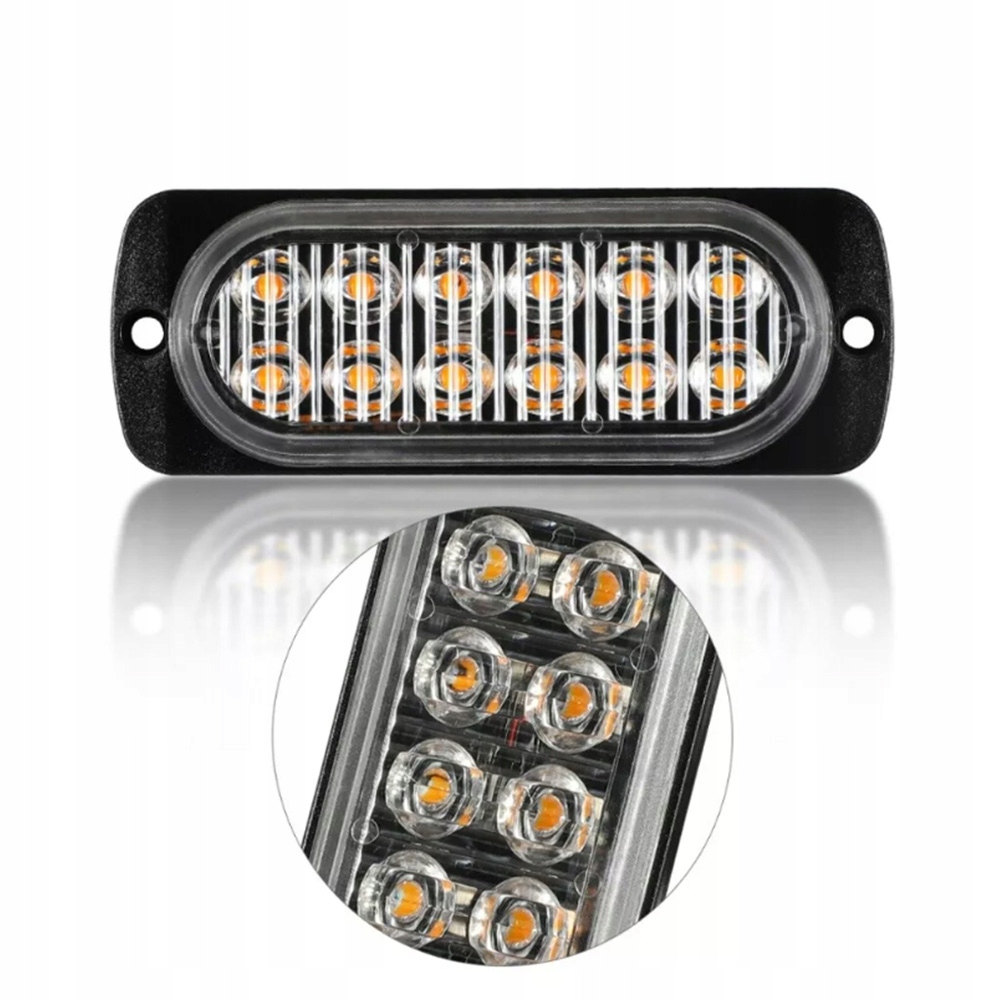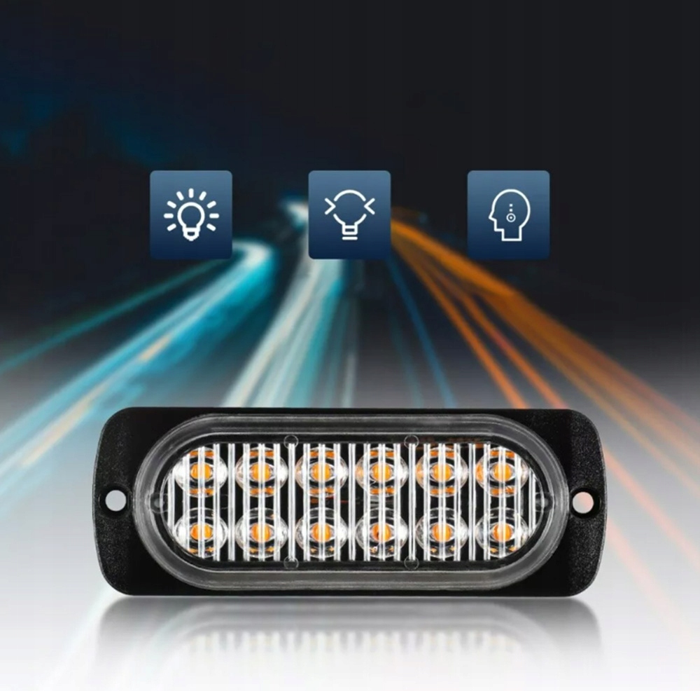Размер: 112 x 41 x 10 мм. Напряжение: 12 В Мощность: 36 Вт Водонепроницаемость: IPX4 В комплекте: 4 x 12 светодиодных аварийных фонарей для автомобиля.