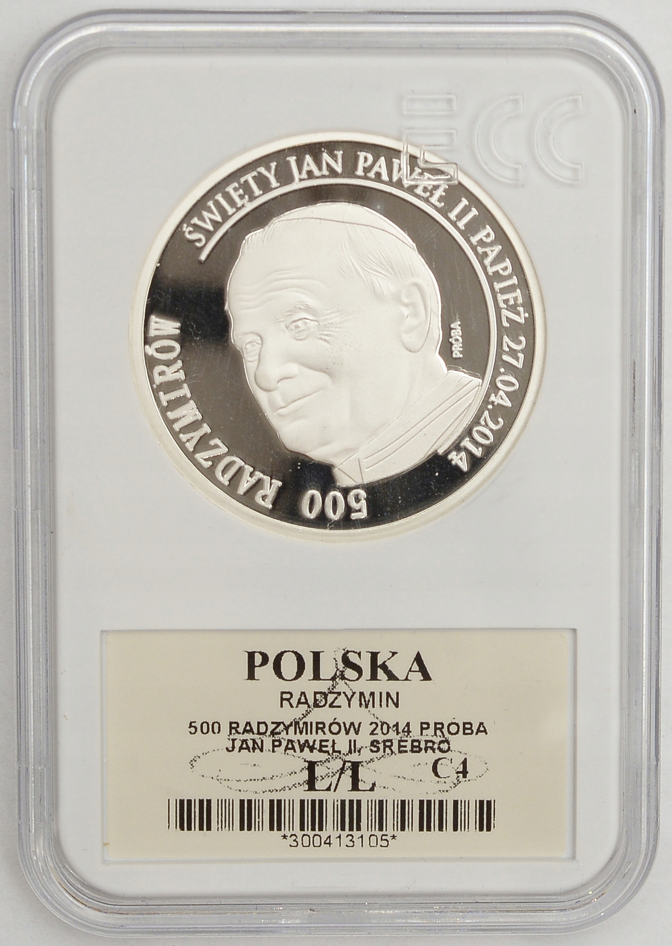 12.es.РАДЗИМІН, 500 РАДЗИМИРІВ 2014 ІВАН ПАВЛО ІІ проба Ag GCN Л/Л