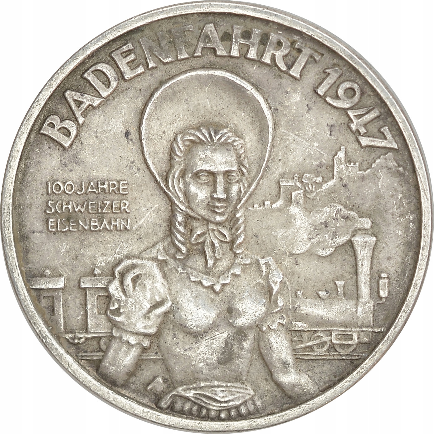 12. ШВЕЙЦАРИЯ, МЕДАЛЬ – ЖЕЛЕЗНАЯ ДОРОГА, БАДЕНФАРТ 1947 г. Ag