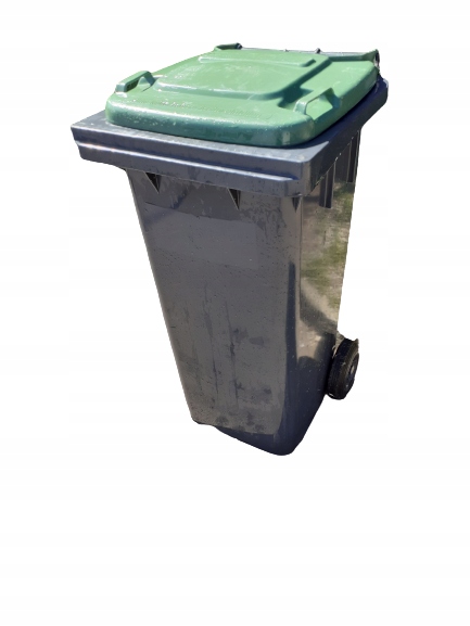 Б/у 120-литровые контейнеры графитового цвета с зеленой крышкой
