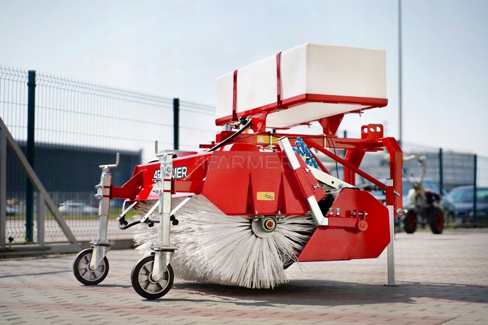 Подметальная машина 120 см для трактора с корзиной и оросительным контейнером 4FARMER